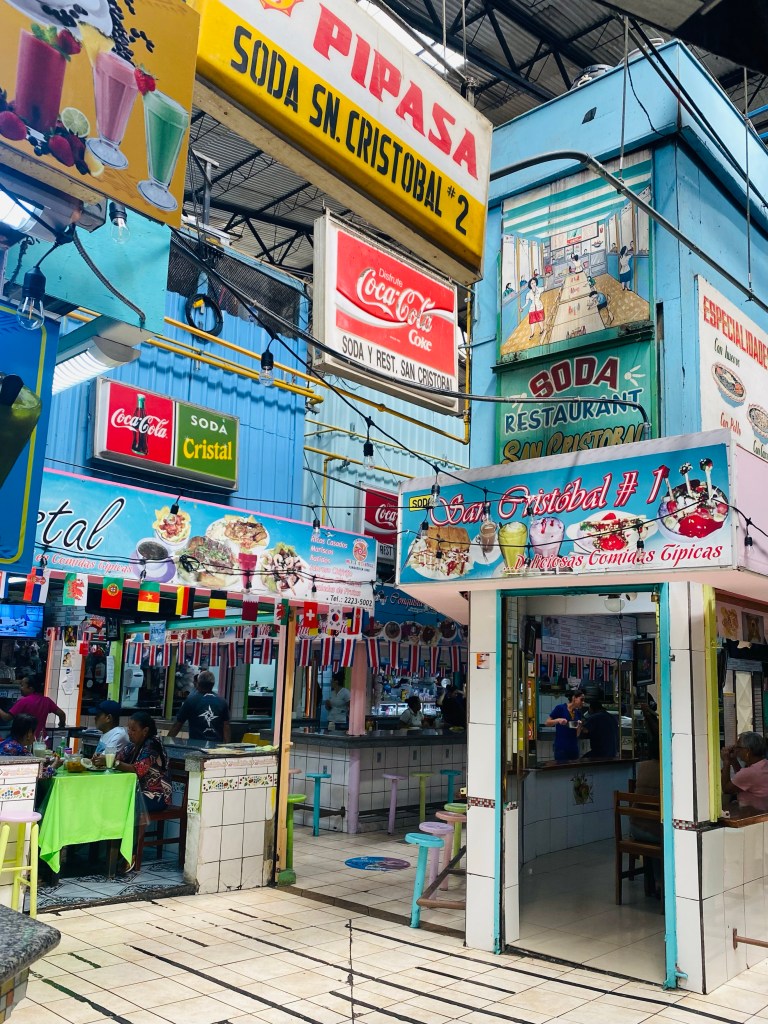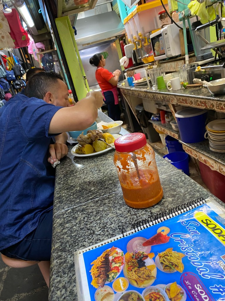 I then went off to the Central Market which is a big covered building with hundreds of stalls selling anything you can think of – clothes, meat, pets, herbal medicine and then lots of little cafes (they call them sodas) that you sit at the counter and eat at. I order what I thought was a rolled potato bread but turned out to be potatoes cooked in a sauce with a few tortilla chips – delicious though!