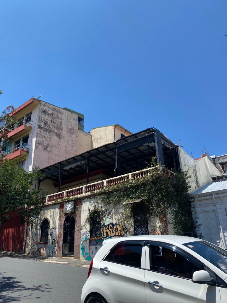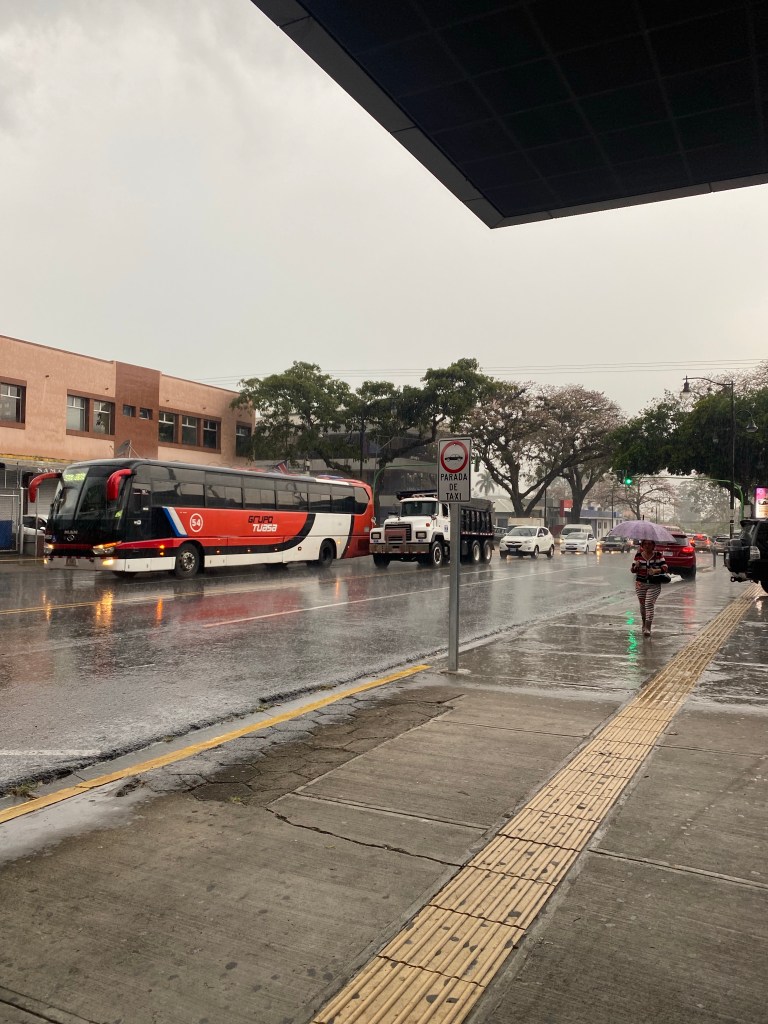 Wednesday morning I woke up early and had breakfast at the hotel (fruit and cake, I’m sure Costa Rican breakfast cuisine is lovely but a beef fajita at 7.30 am is a step too far for me…!) Then I walked the half an hour into the main centre. It’s quite American feeling in that everything is big, wide roads, big sprawling buildings and big cars. It’s not very well kept though, you have to keep your wits about you as otherwise you’ll trip over the potholes! There’s also huge drainage channels between the pavement and the road, that should’ve been my first tip about how much it rains here!