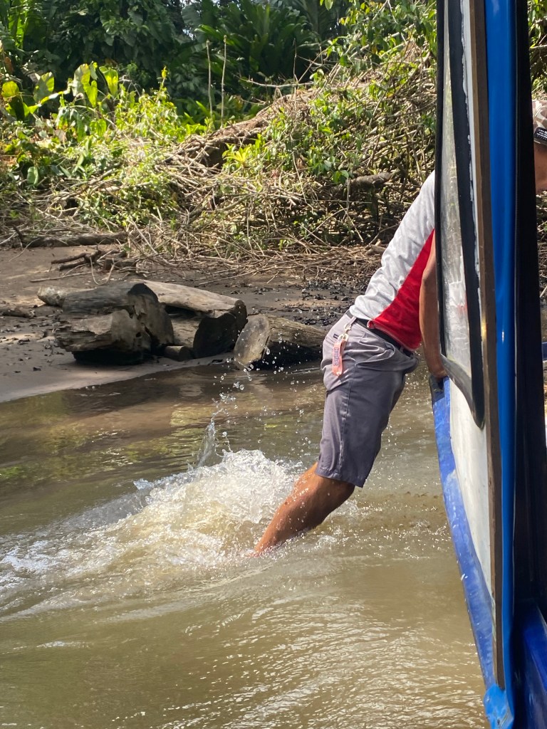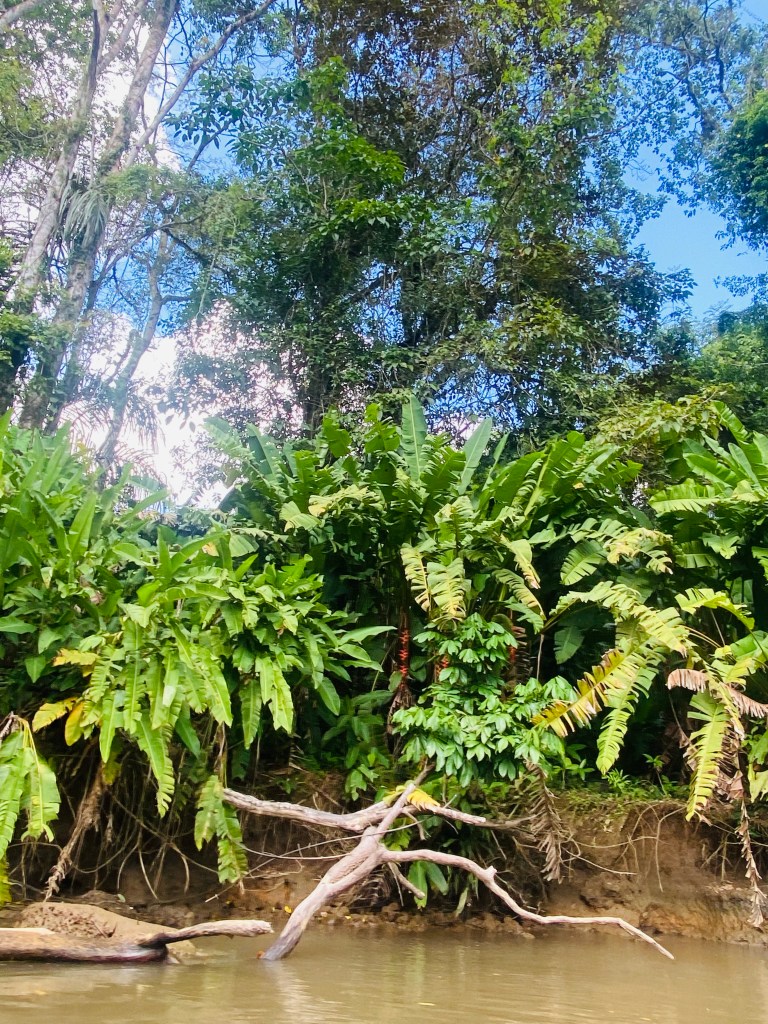The boat ride was incredible, we saw loads of iguanas, geckos, herons and a turtle. The vegetation was amazing, the pictures can’t do it justice. One slightly hairy moment where the boat got grounded but the second mate jumped out and pushed it off again – bearing in mind 2 minutes before we’d seen a baby crocodile I think he earned his wages today!
