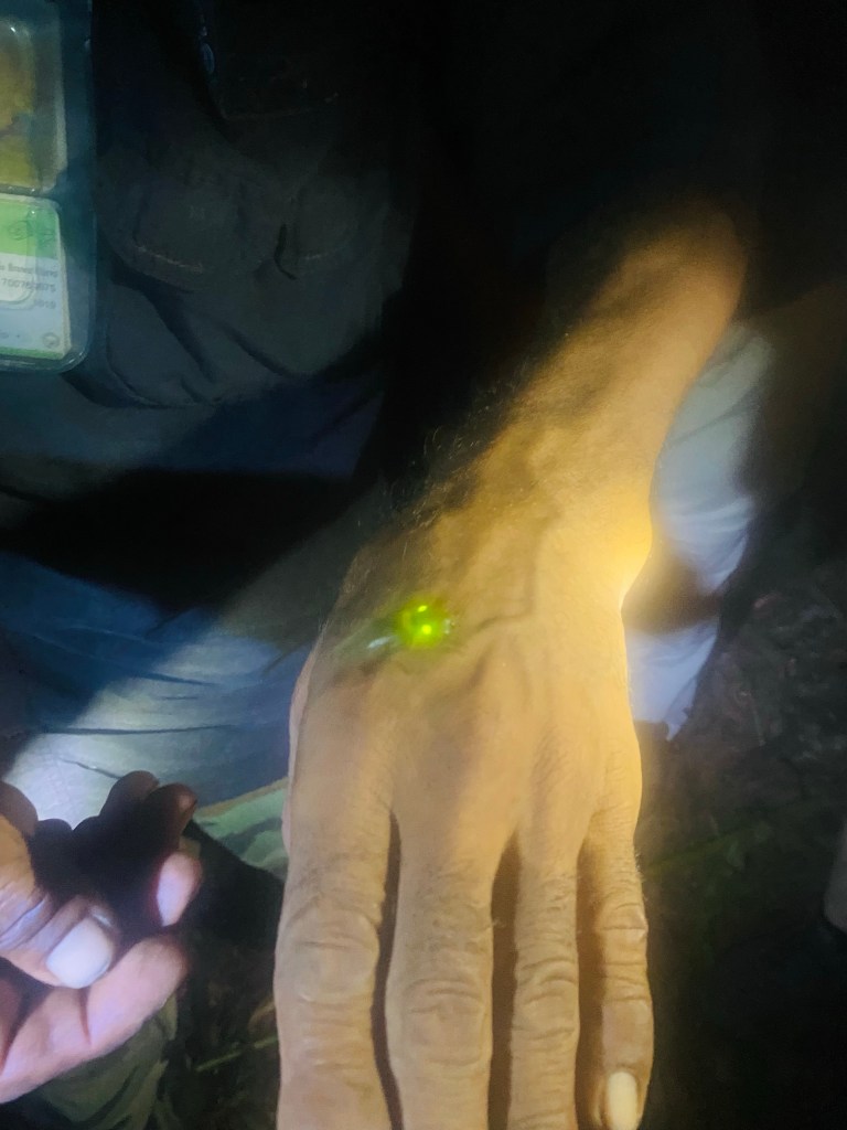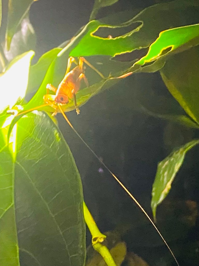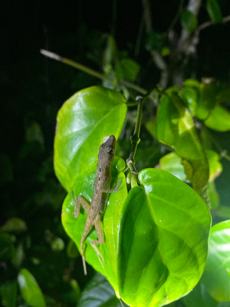 Finished the ice cream and chat and the kids finished off the plantain chips I found in my handbag – mum then split open a coconut and we all ate the flesh out of it too – I’m loving the reciprocal snacks so far! Said goodbye and I then had a quick change into long trousers and closed shoes as we were doing a night nature walk 6-8pm. It was so good! We went really deep into the forest, off the beaten track would be quite the understatement! We saw so much – tree snakes, frogs, geckos, porcupines, clicking beetles with bright eyes like green torches, an armadillo and a mother and baby sloth! They were high up in a tree but I still saw them! The photos are blurry because it was dark and the light from the torches distorts them a bit but they are enough as a memory jogger for everything I saw so I won’t ever forget it.