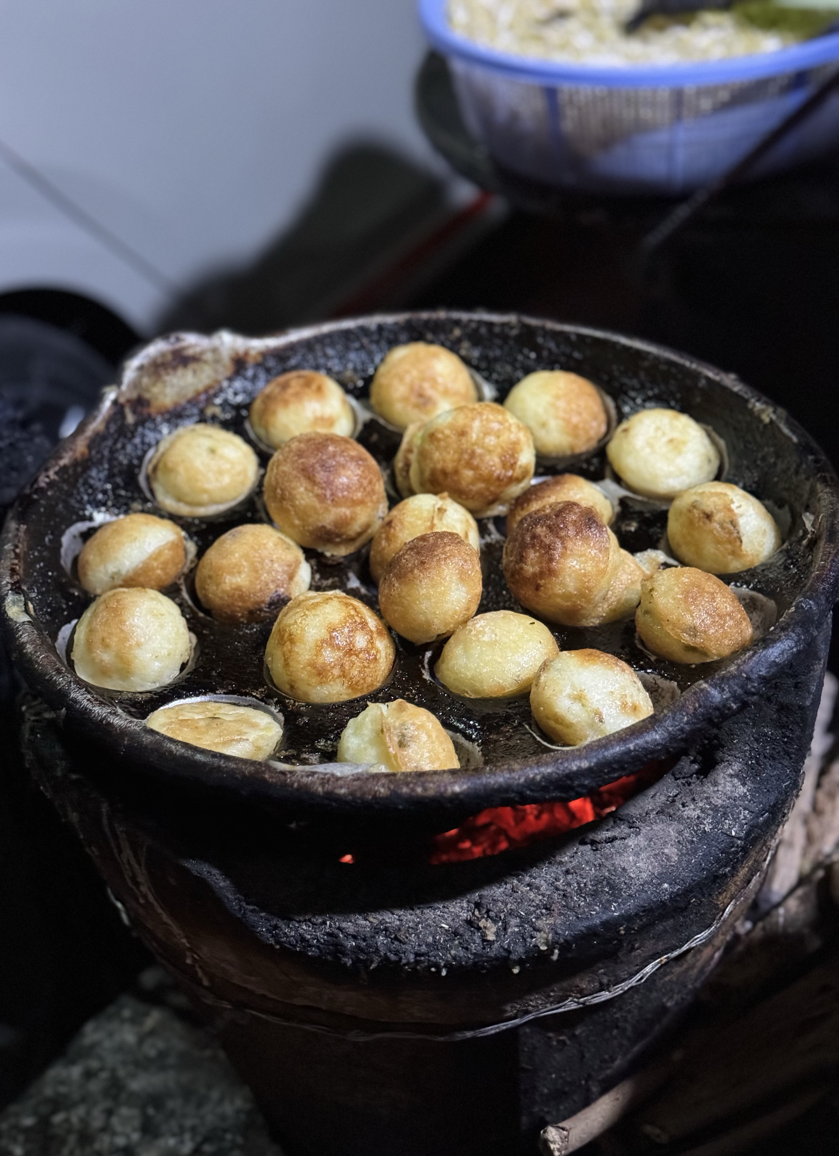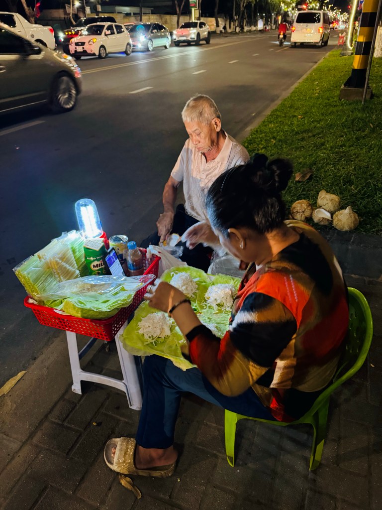 Once the men had depleted the beer stocks sufficiently, we headed to our penultimate stop which was an old couple, literally sitting on the side of the kerb making dessert.