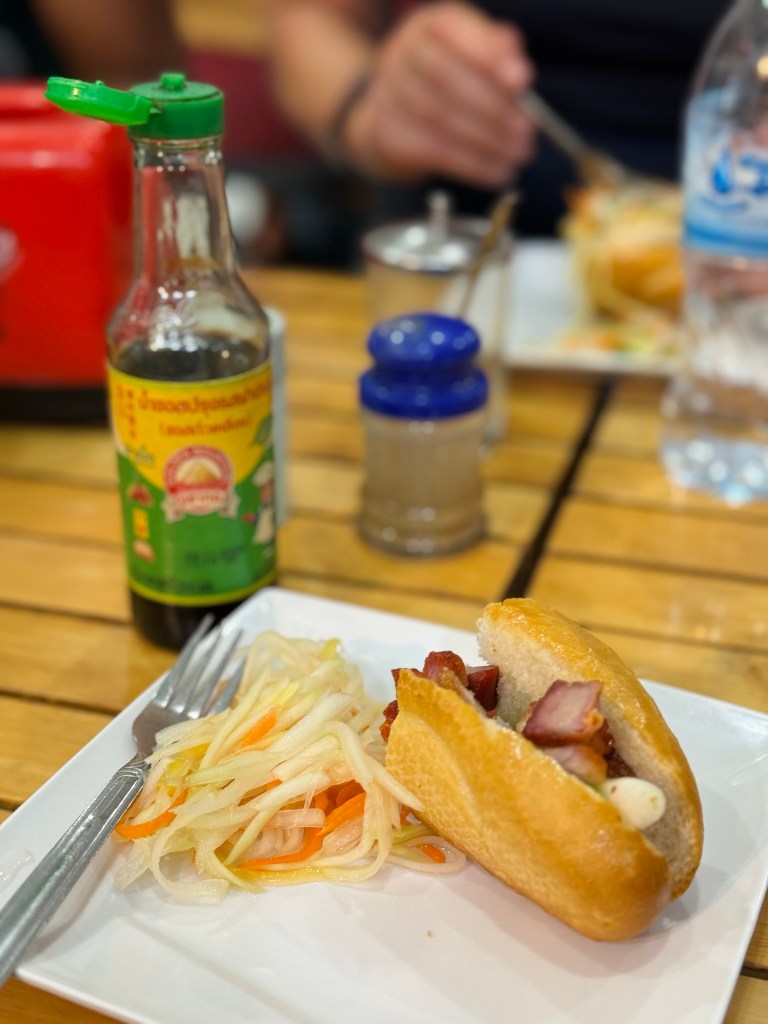 Next stop was for the Cambodian version of Vietnamese bah mi – a very light and crusty baguette filled with pickled vegetables and crunchy roast pork.