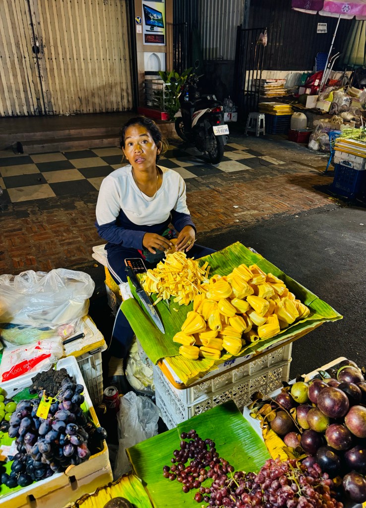 Another high speed chase later and we were at the Russian market, so called because in the 1980’s all the Russians did their shopping there. The Russians are long gone but the name has stuck! We grabbed some fresh jackfruit from a street vendor – soooo much better than the ones I got at Bangkok airport, it was so fresh and sweet.