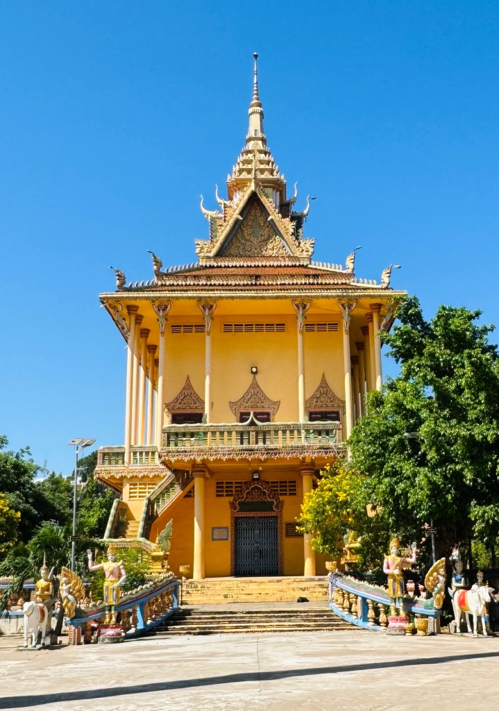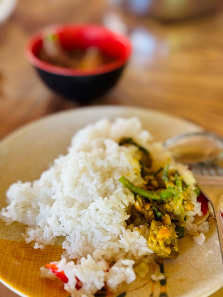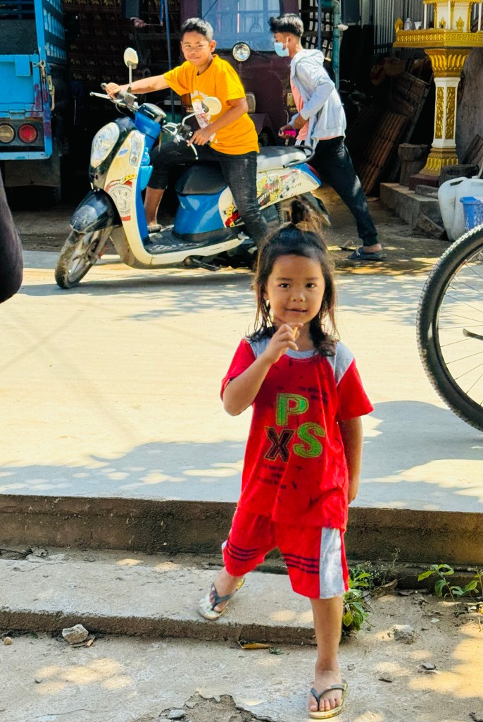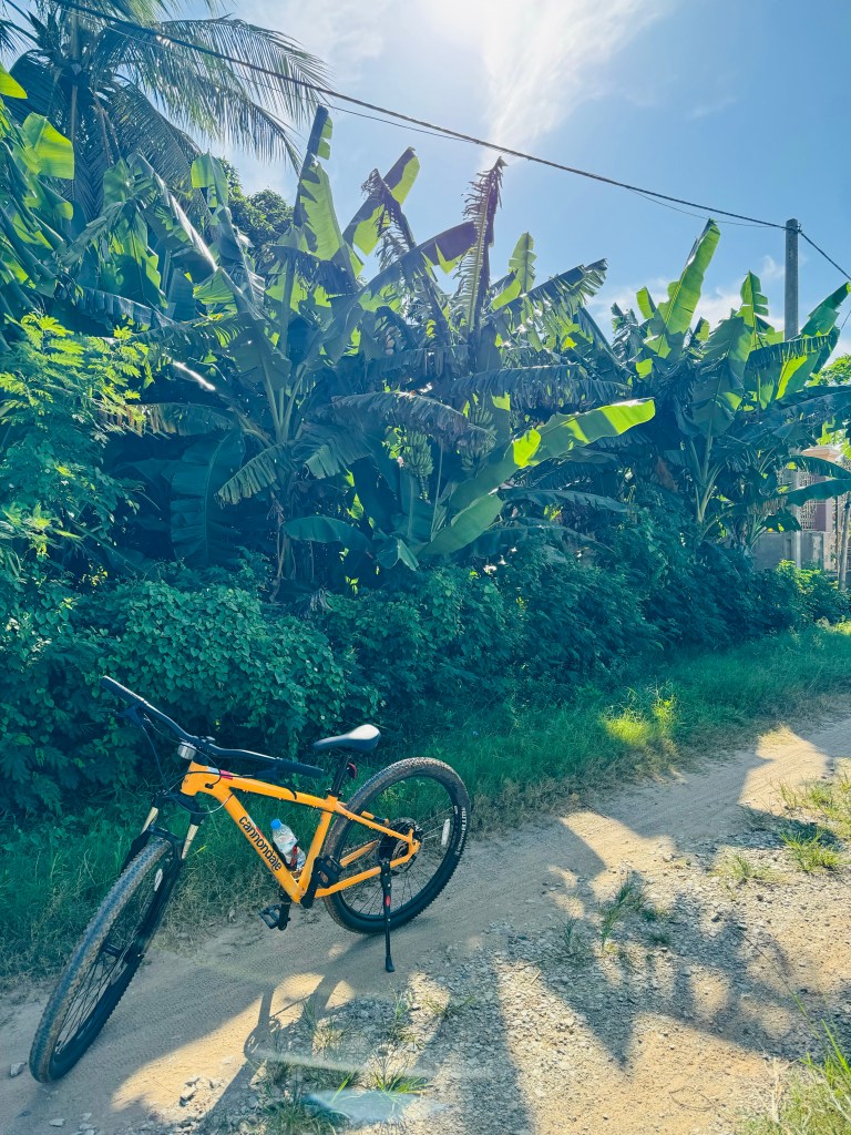 Off on the bikes again, past fields growing bananas, mangos, lemongrass and coconuts. The guide informed us of the many, many medicinal and other uses of lemongrass which included snake repellant and using the leaves as a splint for broken chicken’s legs. I’m sorry, I do not believe this is a thing! Who is splinting a chicken 😂