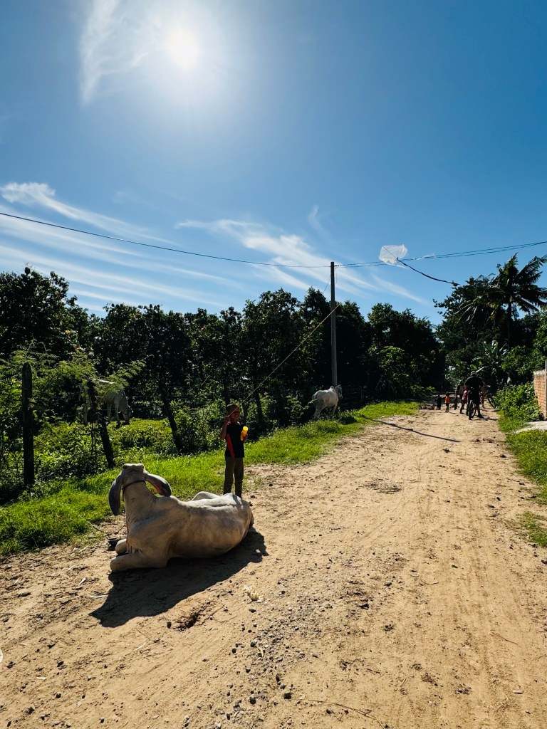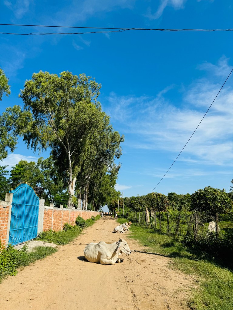 The American guy was very sweet and kept looking back at me as I was bringing up the rear and shouting back asking I was ok – it was very much like going for a bike ride with dad! While I was ok with the actual riding, the saddle was an instrument of torture – I wasn’t the only one that felt that way, some of us had to take painkillers halfway around it was so bad! We rode a bit further through some little towns, what felt like hundreds of children ran out barefoot into the road to shout ‘hello hello’ and wave at us, it was so lovely. I only wish I could have prised my white knuckled hands from the handlebars to wave back 😂 I shouted hello back a lot to make up for it. A few unscheduled stops for cows in the road (they are so different from ours, so boney and with really long floppy ears like a spaniel!) and for some kids flying their kites.