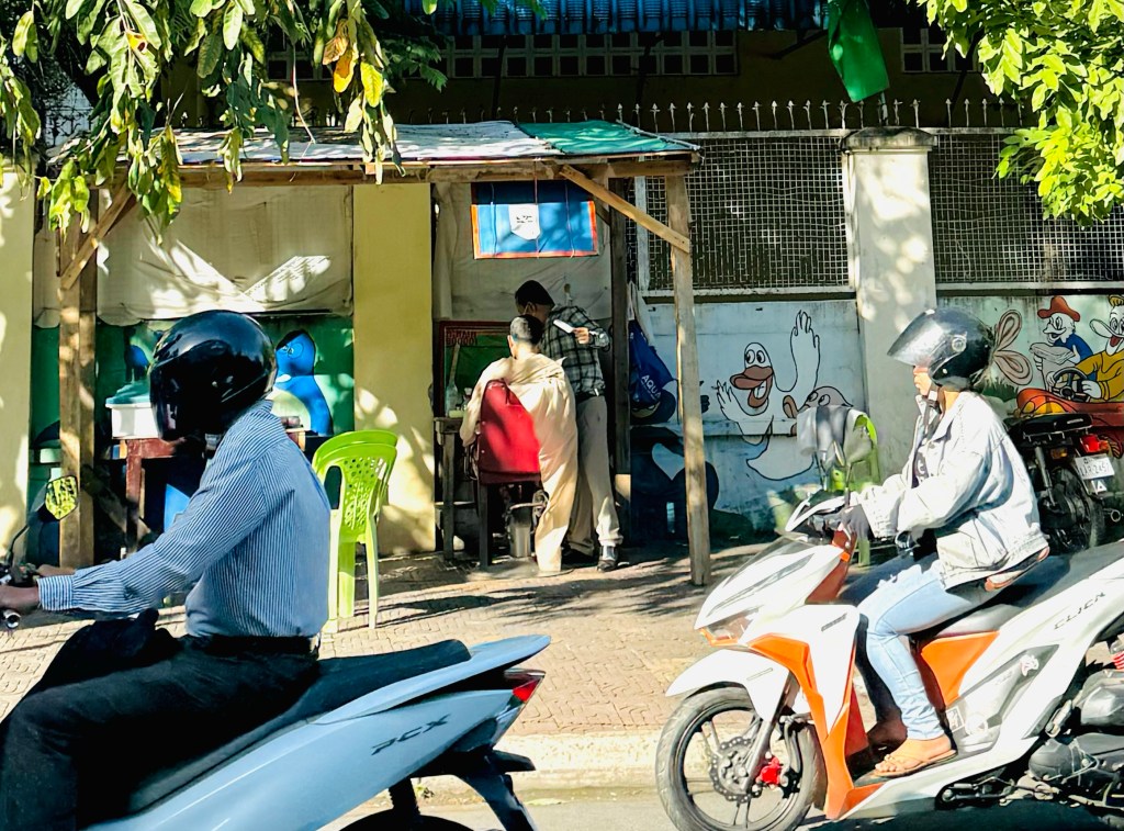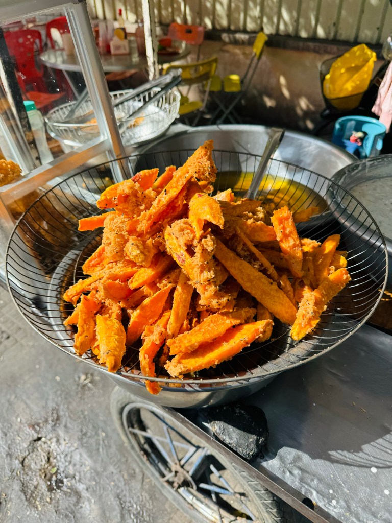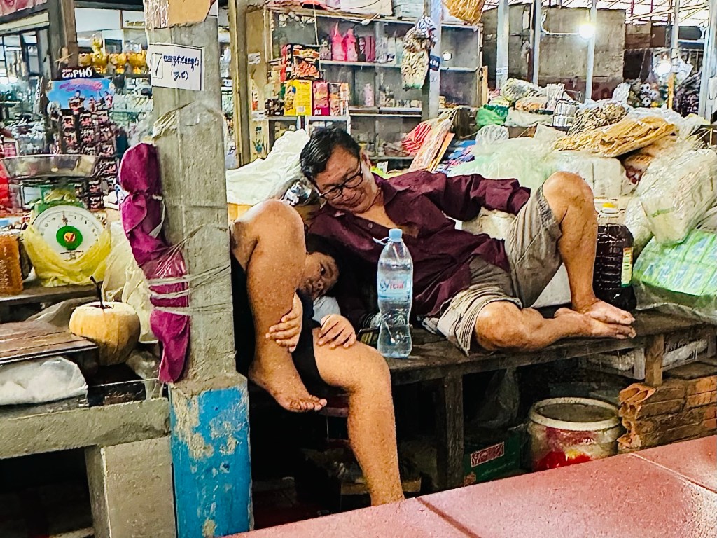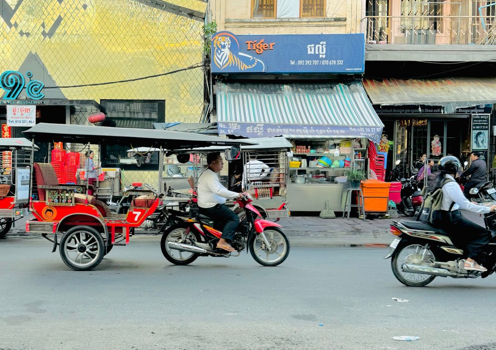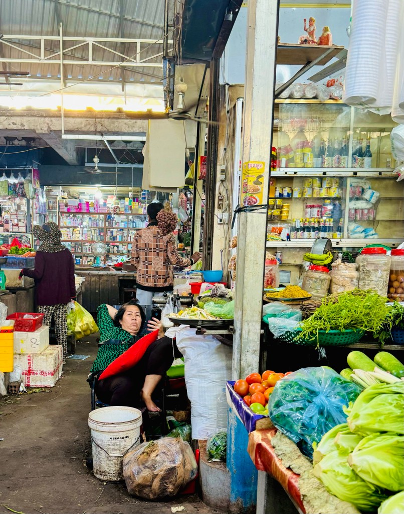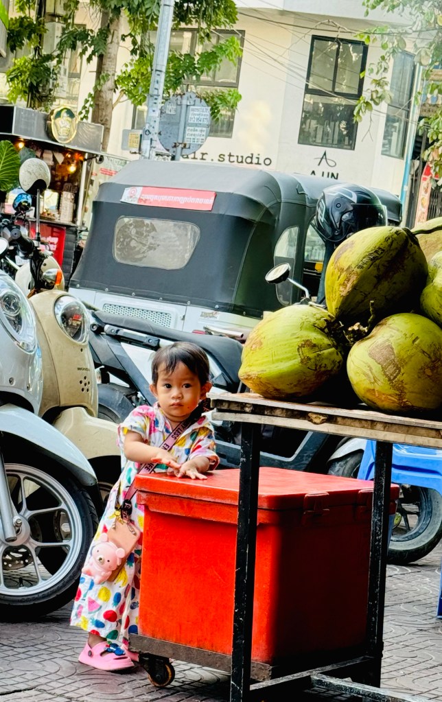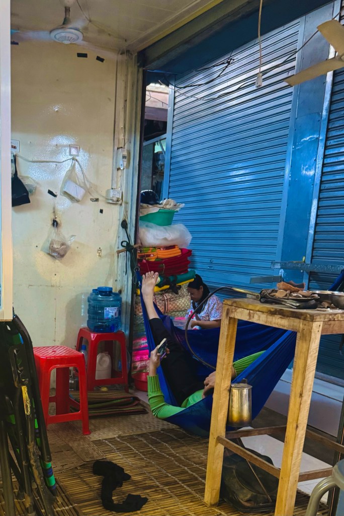 I walked back to the hotel via random sights like a guy asleep in his hammock that he had strung up inside his tuk tuk (I’m going to start doing a photo series of people asleep in public here!) and grabbed some pastries from a roadside stand by putting up 3 fingers and making a sweeping motion – I think she understood as she gave me a selection and threw one in extra for free!