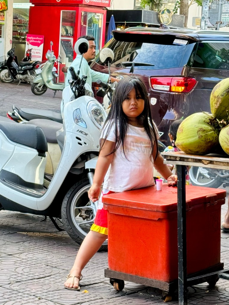There was a toddler at the stall next door, I assume mum and dad owned the chicken stand and she was just left to her own devices to wander about. More than once she almost meandered out into the road – I was poised to leap up at any moment but mum and dad seemed spectacularly unconcerned so maybe they’ve trained her well…😳