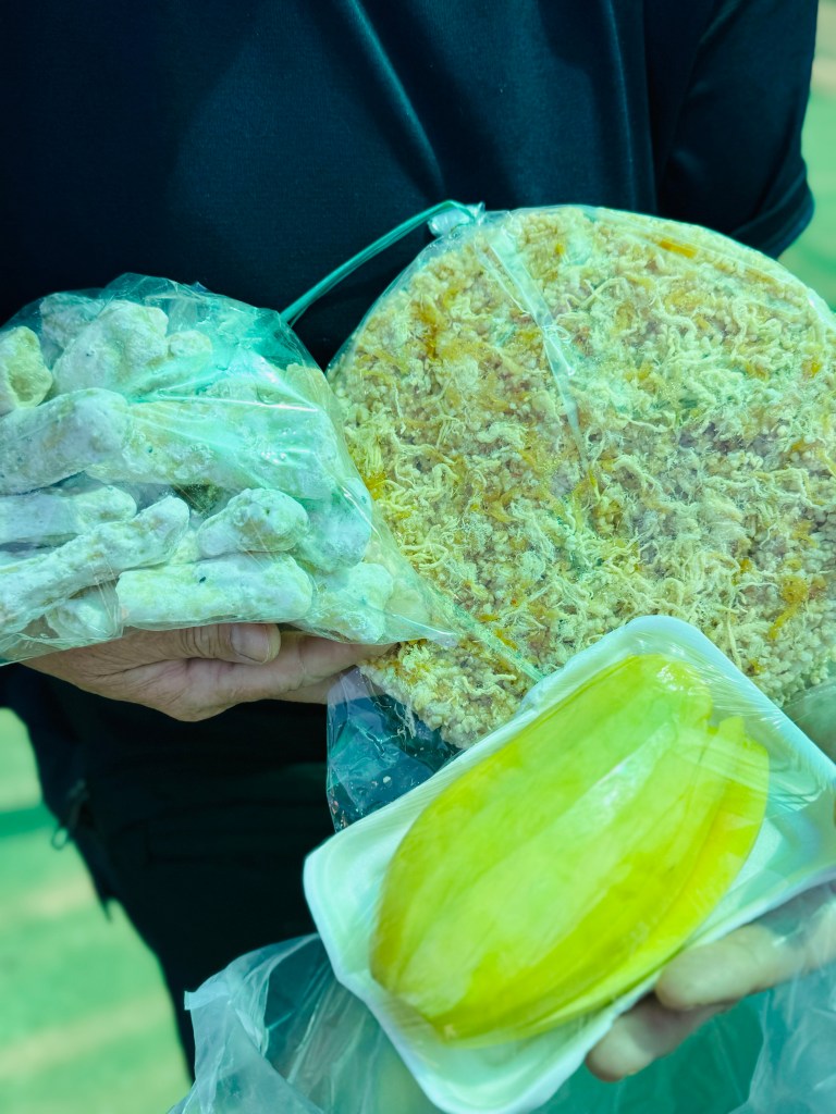 Back on the bus I had some fresh jackfruit in my bag to wash down the insect buffet and we handed all of the snacks around – the fresh mango was of course delicious as always, the round thing that looked like it was made of Rice Krispies less so – no taste and a very cardboardy texture. The ones that were covered in powdered sugar were some kind of fried rice flour and were ok – until Kom told us their Cambodian nickname is ‘cat poo’ – that put us all off a bit! The rest of the snack bag ended up with the driver to finish off.