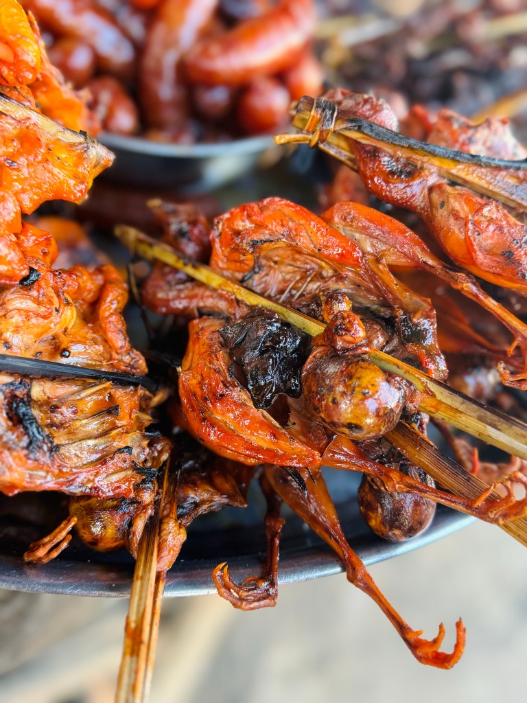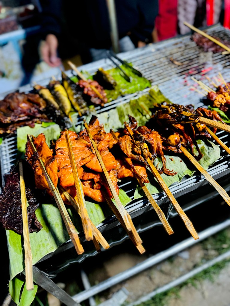 Talking of spiders though, this particular area is famous for eating fried insects and there were a lot on sale so Kom bought them for us to try. Never one to turn down an opportunity for a disgusting story I got stuck in! I had a cricket, about 2 inches long, fried in some kind of sugar and salt mix. You know, it wasn’t bad at all – tasted very similar to a prawn if you were to eat it with the shell on. If you could get over the look of it I could see why you’d eat them. I also had a tarantula leg (just snapped it straight off the body!) which didn’t taste of much, just fried, and a silkworm which I didn’t love, very rich and fatty. I’ve tried steamed silkworm before in Vietnam and wasn’t a fan then either, at least I know now that it’s not for me – if deep frying it doesn’t make it delicious, nothing will!
