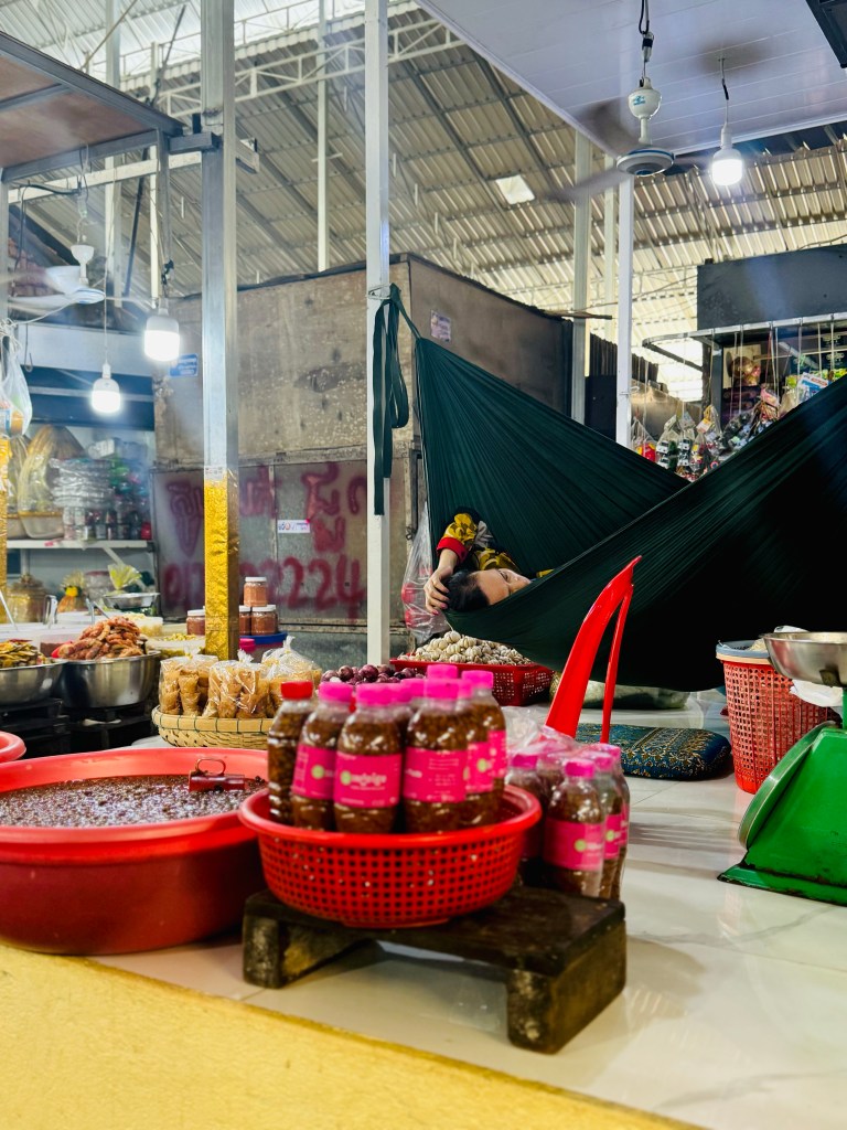 We browsed around an indoor market, we were very much the only tourists and got some odd looks but we did lots of smiling and saying hello and on the whole people seemed happy to see us. So many stall holders were asleep in hammocks strung up across their stalls – I think the concept of a siesta is strong here!