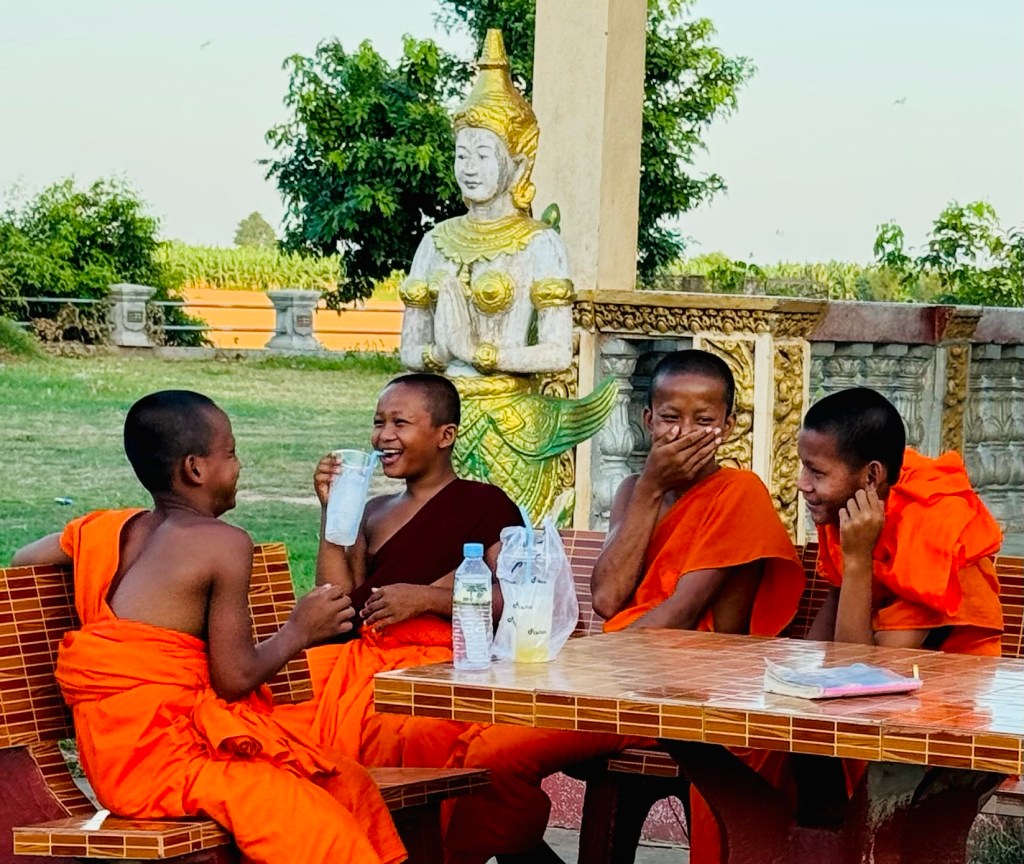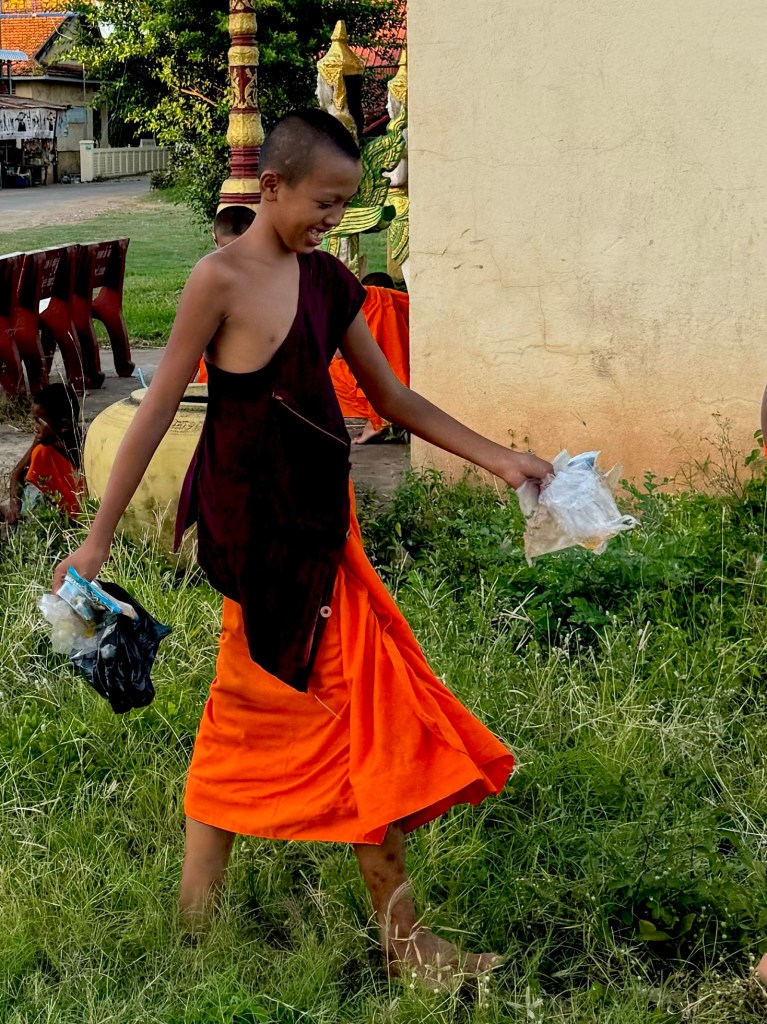 All of the child monks were out, playing and gathering litter – as we were leaving, some of them were sitting at a picnic table and kept looking shyly at me – to make them laugh I started making funny faces – they absolutely cracked up, it was so funny. Even the head monk standing at the side was smiling so I didn’t get anyone in any trouble!
