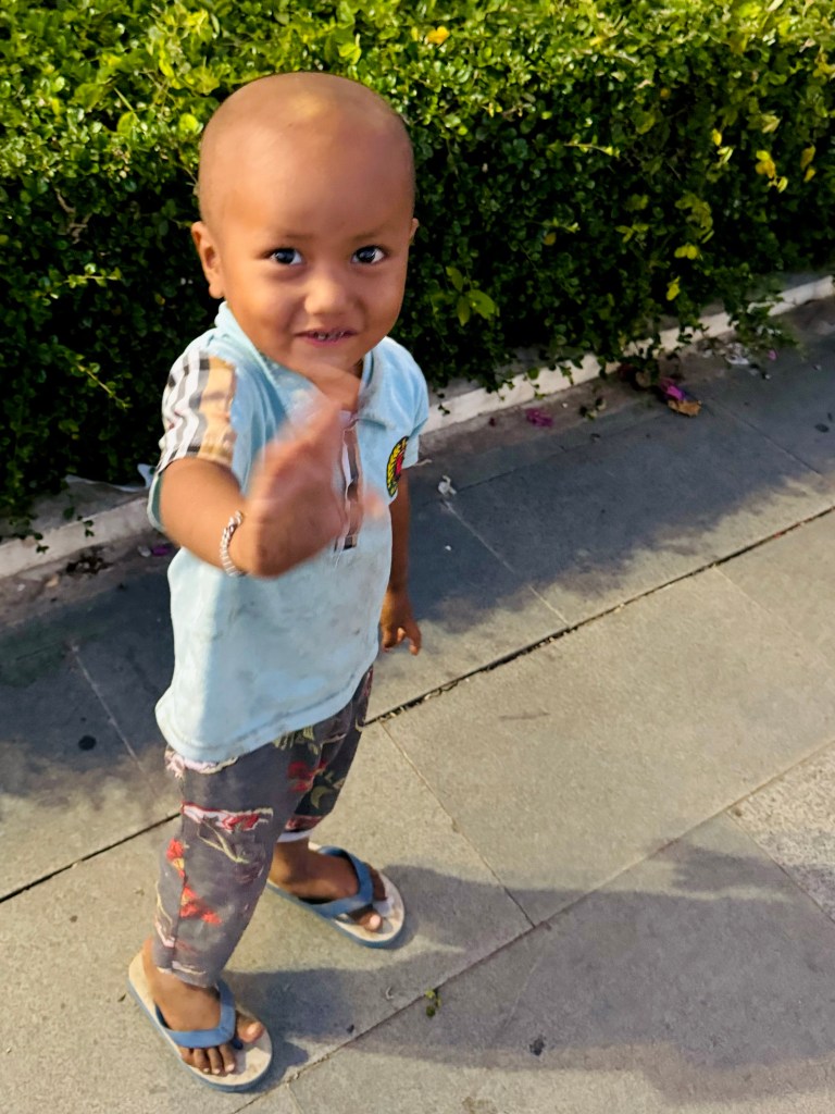 Kids flew kites, some beautiful colourful ones with long tails ones and some just made from discarded plastic bags, played games and in one memorable case a kid with the skinniest arms I’ve ever seen attempted some shirtless press-ups! Tiny kids ran around shouting at each other, beaming with joy and then dashing up to me to shout “hi hi!” and high fiving me, at points I had at least half a dozen dancing around my feet!
