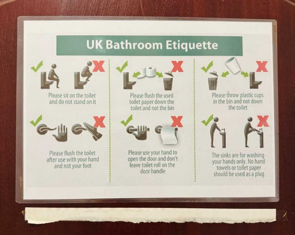 It’s all a bit papering over the cracks though, so far I’ve had to bin a fake flower in a vase by the bathroom sink as it was literally furry with mould, and when I unplugged my phone charger the socket plate came off the wall with it! It has an excellent line in signage though – particular favourites are the ‘11st’ floor directions and the UK bathroom etiquette poster stuck to the inside of the toilet door…