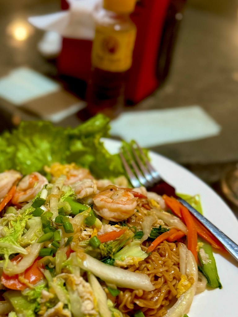 By now it had cooled down enough for me to fancy eating dinner so I went to a restaurant that Kom had recommended just around the corner from the hotel. I had the stir fried noodles (I actually think these might have been wheat noodles rather than rice, if so that’s the first time I’ve seen that here) with lots of vegetables, squid and prawns. It was really, really good and with a big bottle of water cost less than £6. I sat there for a couple of hours editing pictures, diary writing and watching the world go by, it was bliss.
