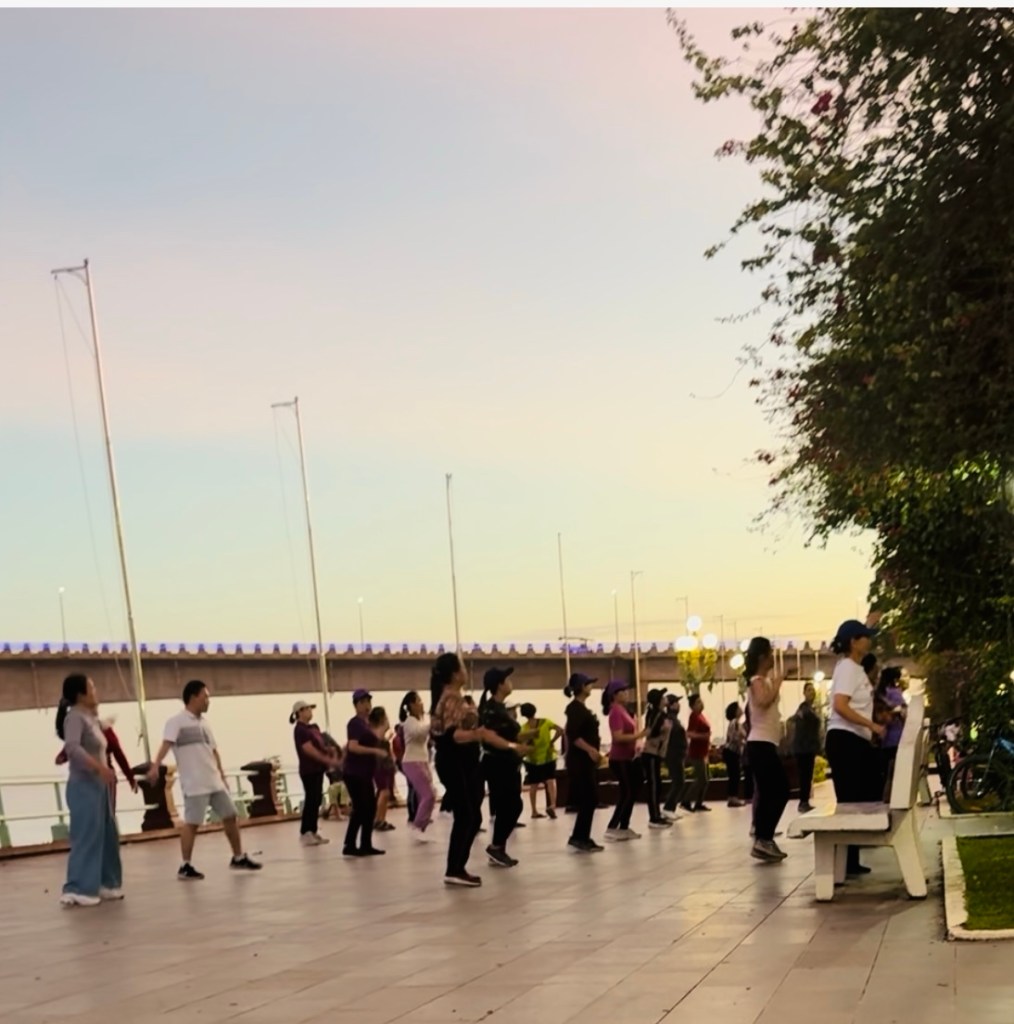 When we got back to the hotel I had 45 minutes to kill and the sun was beginning to set so I went for a walk through the dusky town. Well. All the people that had been conspicuous by their absence earlier were out in force, it was heaving! First I came across a ladies exercise class with dozens of ladies leaping up and down to pumping music, Jane Fonda 1980’s style. Not only was this crazy enough but 200 yards up the promenade I found another identical one!