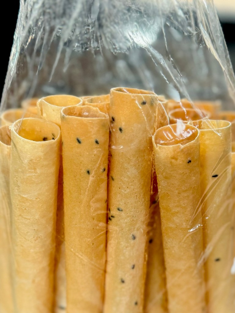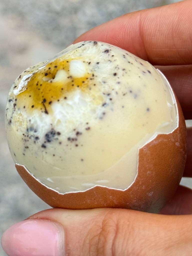We tried the first type of eggs – they’re alright, like a slightly boring and solid omelette and the bread, which was a weird texture, a bit like a very thin, slightly stale prawn cracker and slightly sweet – Kerry said it reminded her of candy floss (actually fairy floss as they call it down under!) and I could see what she meant, it had the same way of melting as soon as it hit your tongue.