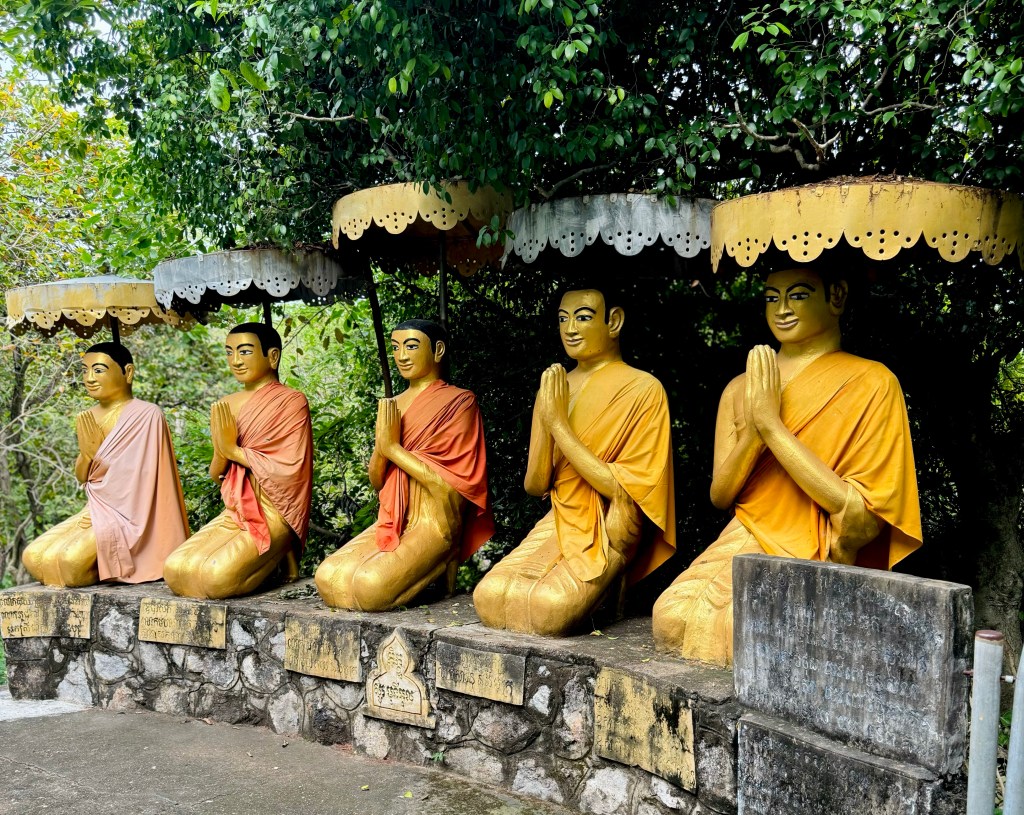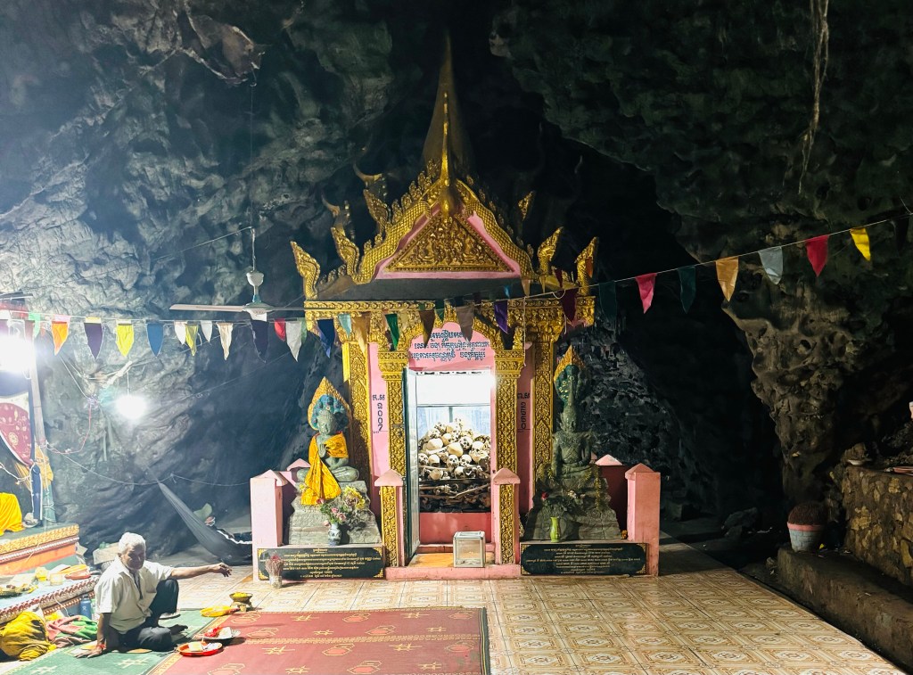 Around the temple itself were both male and female monks looking serene and benign – unlike the 2 guys looking after the huge shrine in the cave itself who were having a nap and a fag respectively!