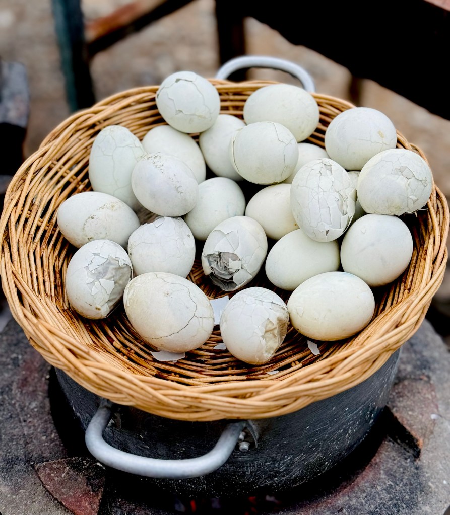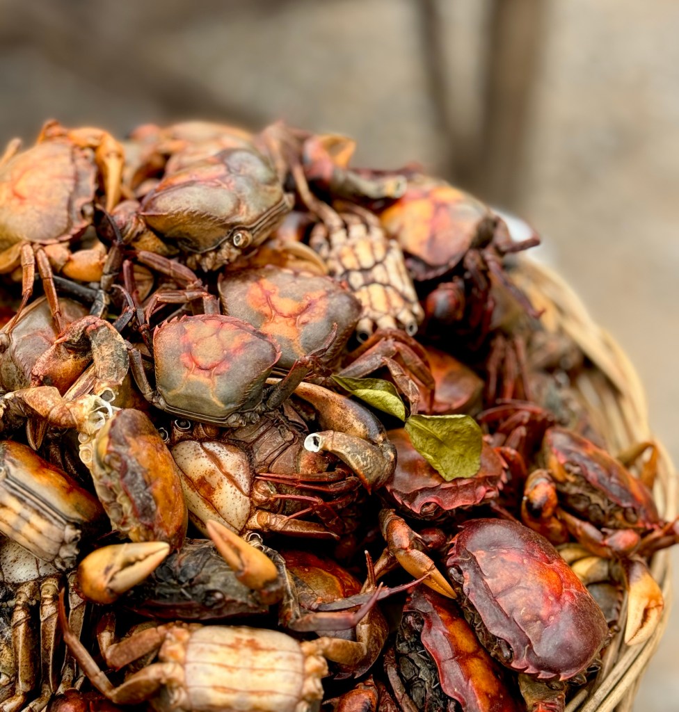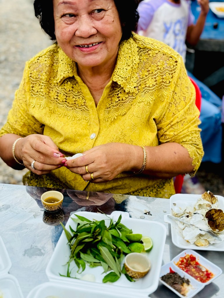 A few hundred plastic chairs and tables were laid out and local families and a few tourists were sitting about in the clearing at the side of the road, all eating foods cooked by the ever enterprising sellers that had set up grills at the back. Most popular seemed to be crabs, snails, eggs where they make a hole in each end, drain the egg out, mix with herbs and pepper, put it back in and steam it, the ‘other’ eggs with the half formed baby birds in (the only thing on these tours I have ever refused to try – just a step too far. This is from a girl who has eaten pig brain…) and a thin kind of crispy flat bread.