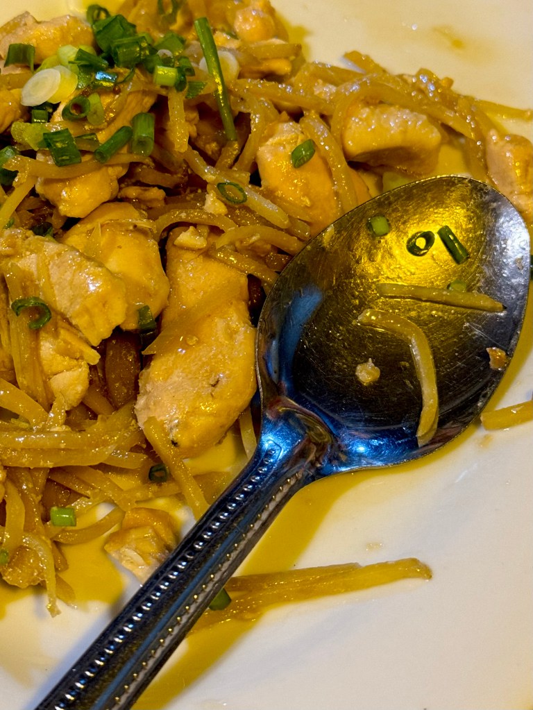 We’d been assured his wife was a wonderful cook and he was was near enough the money, the food was pretty good! First up was slices of aubergine deep fried in tempura batter, dipped in a black pepper and lime sauce, this was gorgeous. Then chicken with ginger – so very much ginger, I couldn’t eat it, my mouth was burning!