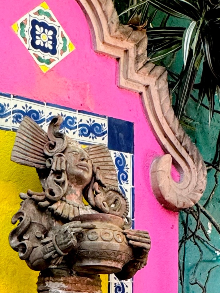 Exploring more, we checked out a set of buildings built around a central courtyard which used to all be private, very expensive homes but which are now a restaurant, function rooms etc. The colours were so vibrant and beautiful, apparently the style is called folkloric and is very traditional. Just gorgeous.