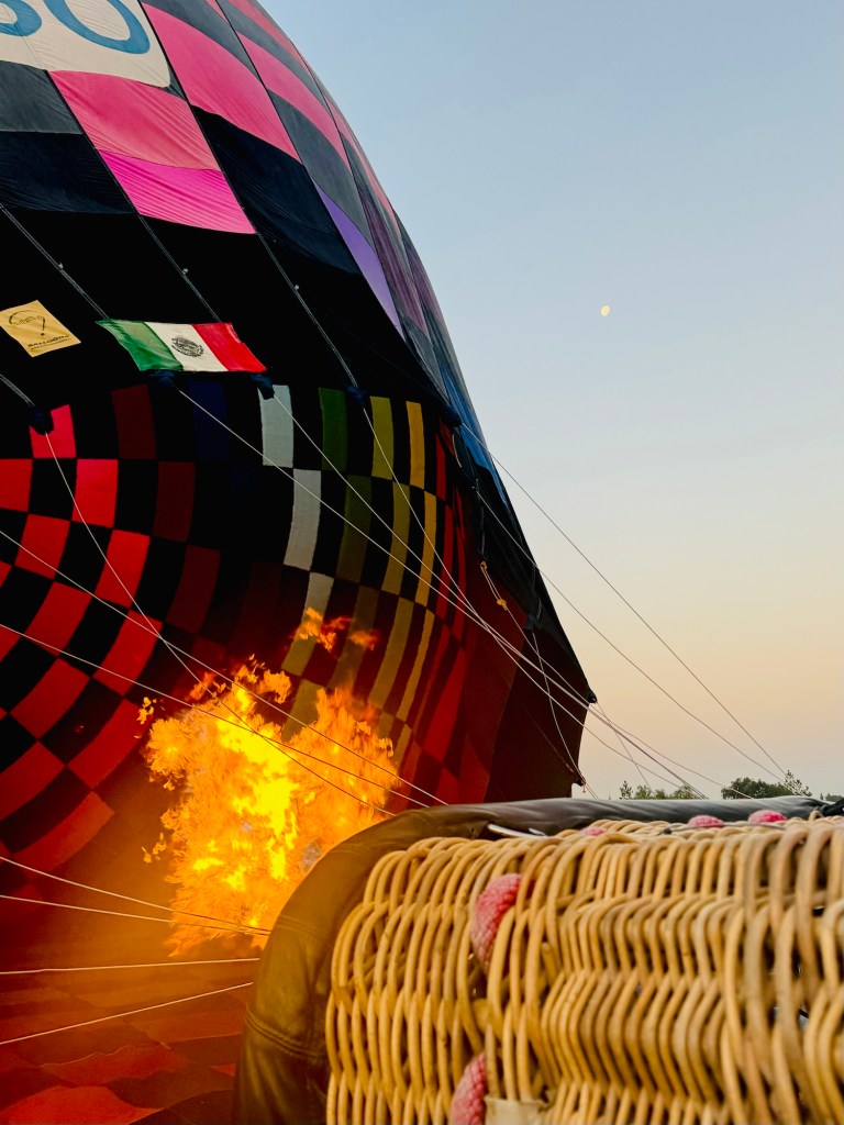 Ever so slightly altering the spiritual vibe was when the – captain? Balloonist? Not sure what to call him – turned on some music – very quietly but ever so often you’d get a snatch of song – one memorable one had a woman singing about her lost love – apparently she loathes him, she’s extremely glad she’ll never have to see his mother again (know that story, amen sister…😳), F him and everyone he knows but she will in fact miss his dog. So that added to the mood…😂