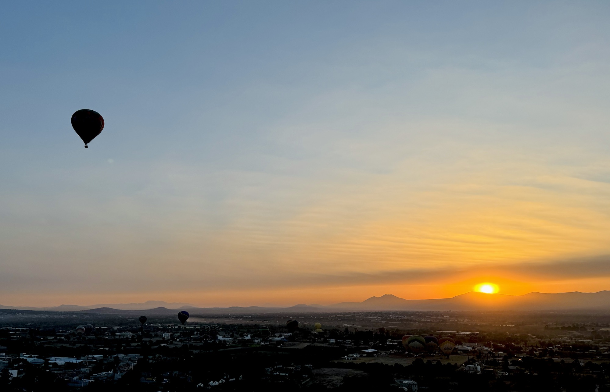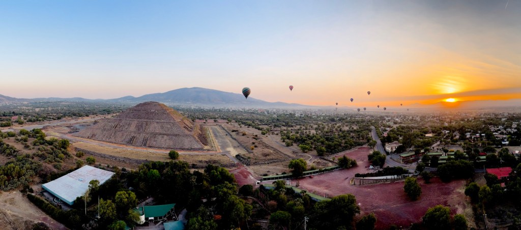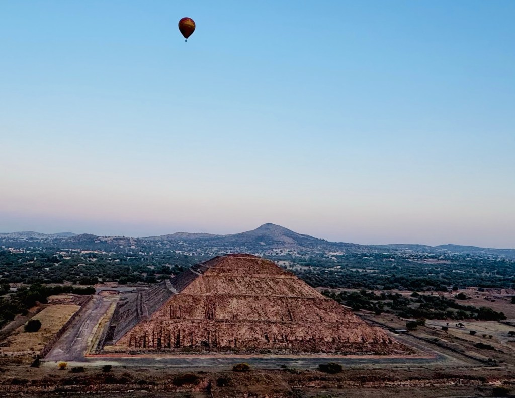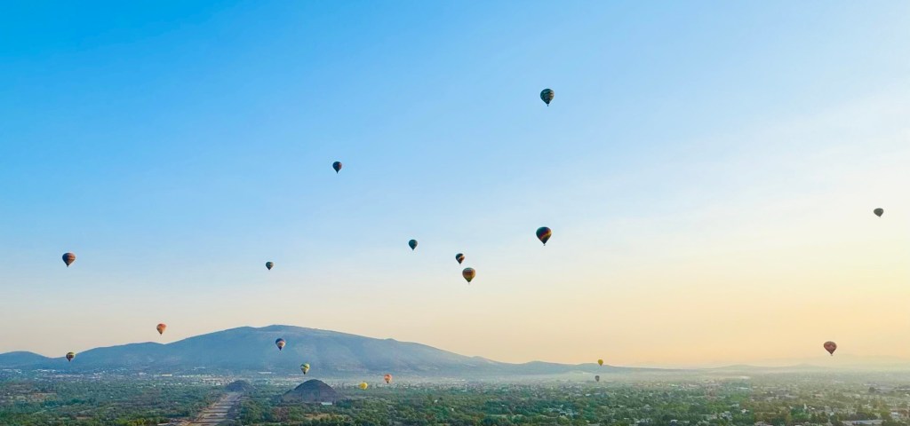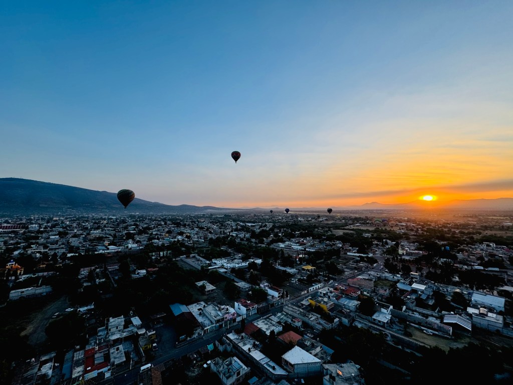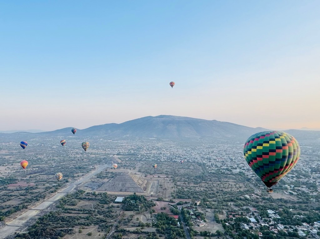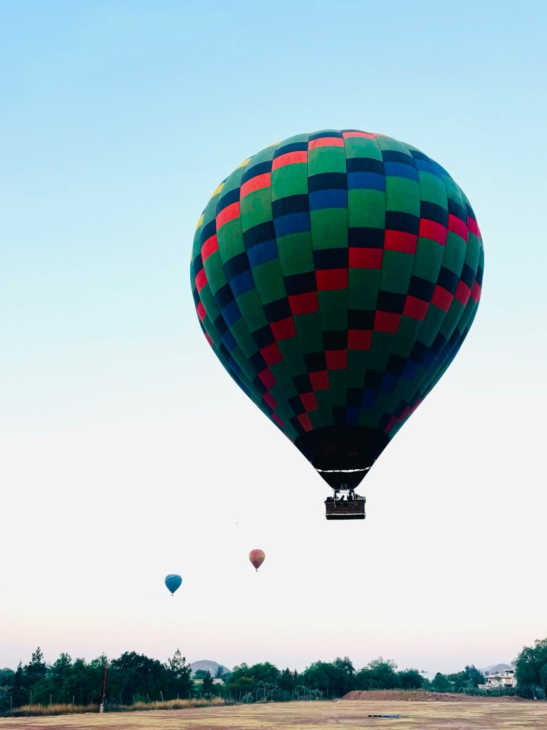 We glided over the ancient pyramids and the fields and towns surrounding them, joined by dozens of other balloons, all hanging suspended in the sky like baubles on a giant Christmas tree.