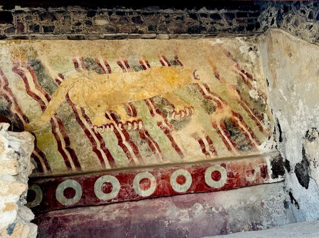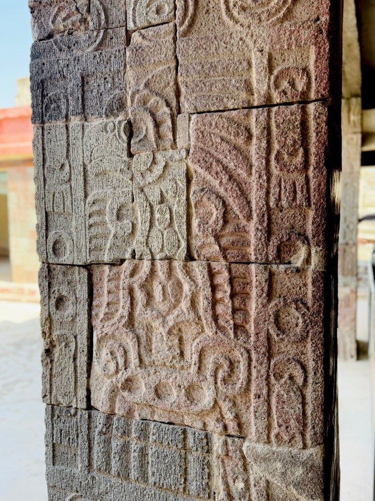 Other interesting facts included how the pyramids are held together with an ancient form of concrete made with ground rocks, limestone and sticky cactus juice and that the whole facade was painted red in it’s heyday (bits of the original paint are still remaining which is pretty amazing bearing in mind it’s 1,800 years old ). My personal favourite fact however was that in 1987 Plació Domingo stood on top of one of the pyramids and sung opera to the thousands of people standing below without having to use a microphone as the site is laid out in such a way it’s has an incredibly powerful natural way of echoing and increasing the volume. That must have been some concert!