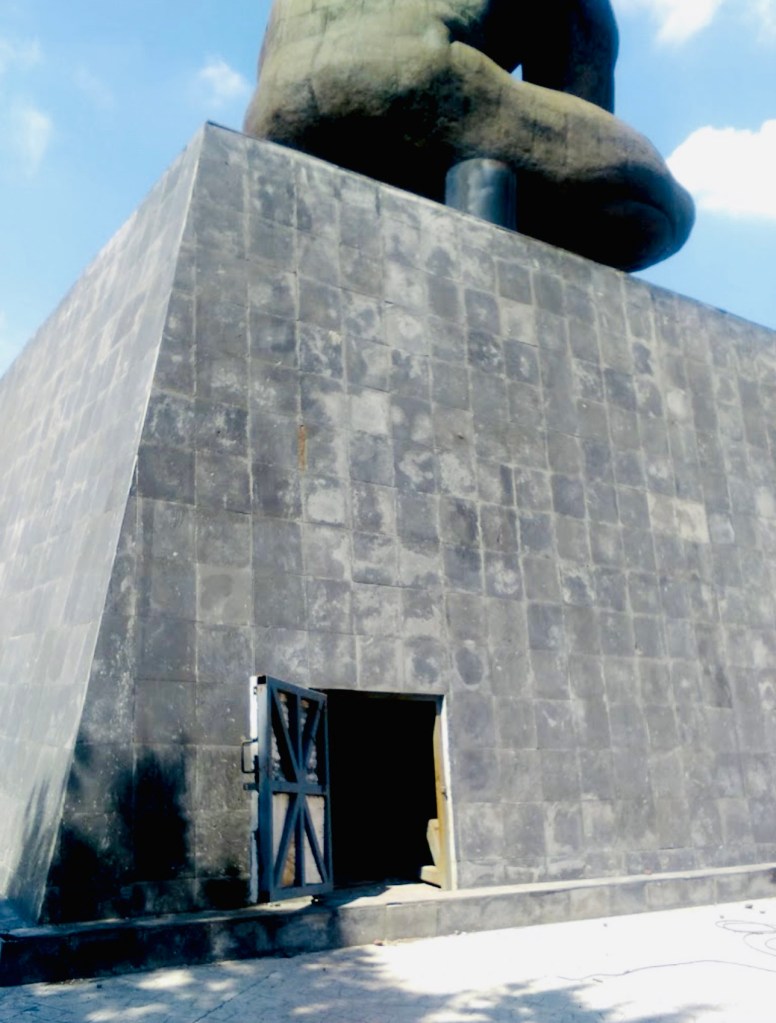 We drove out of the city for an hour in the cool darkness, the journey broken by the occasional random sight such as this statue in the middle of the highway called El Vigilante (photos stolen from google as the car was going too fast to get one) – take a look at the size of the door to get an idea of the scale of this thing. Having it loom up from nowhere out of the darkness is quite something when you’re half asleep still!