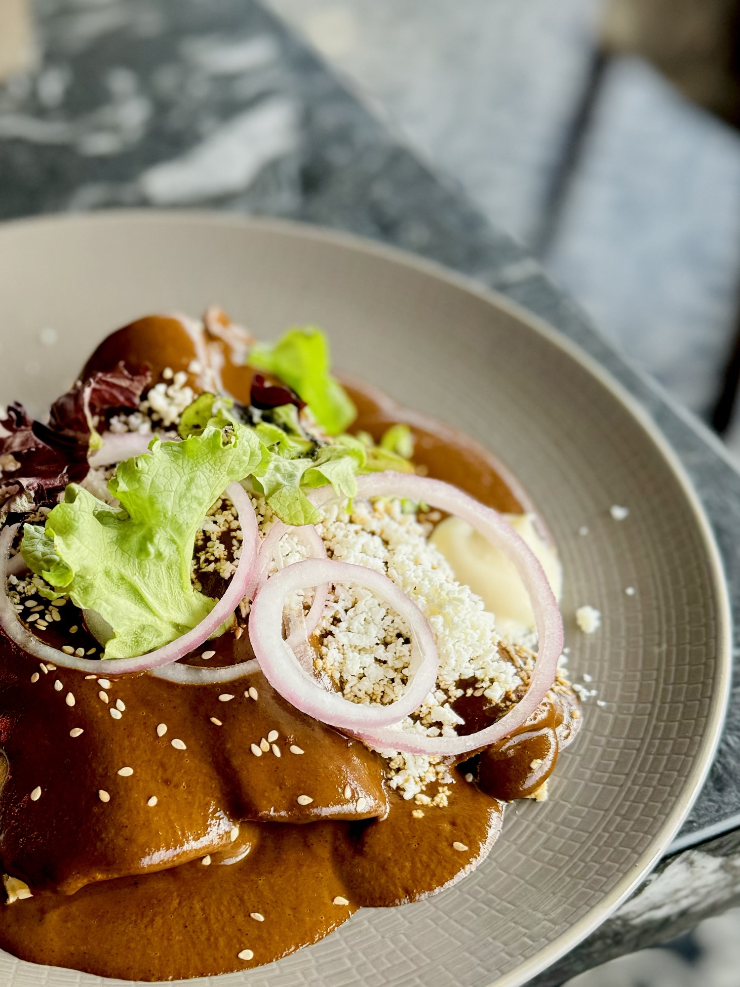 So, I gave the whole hot food thing for breakfast another go today – it’s not for me 😂 This was a speciality of the kitchen – it’s 3 tortillas wrapped around totally dry pieces of chicken breast and then topped with this earthy sauce with raw onions – how can that be a go-to morning thing?!