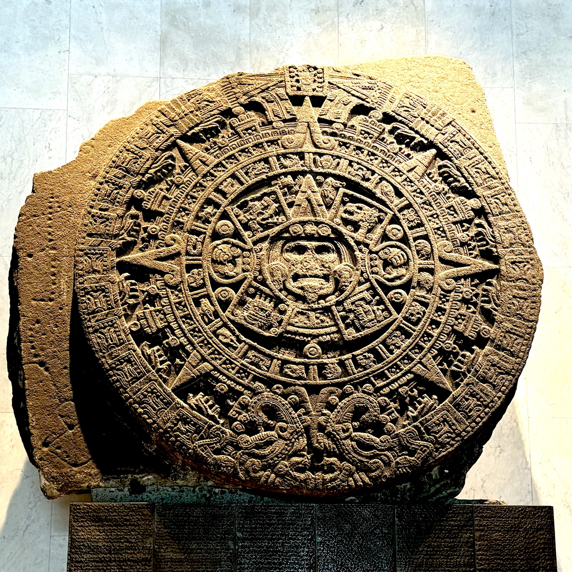 4. This huge stone below (which was spectacular to see, 12 feet in diameter and 25 tons) was slung under the town plaza to be used as foundations by the Spanish when they invaded. When it was discovered in the mid 1800’s they stuck it on the side of the main church – where drunk American soldiers celebrating their victory in the Mexican-American war used it as target practice 🙄 You can see the bullet holes in the sides and that’s why the face in the middle is all eroded.
