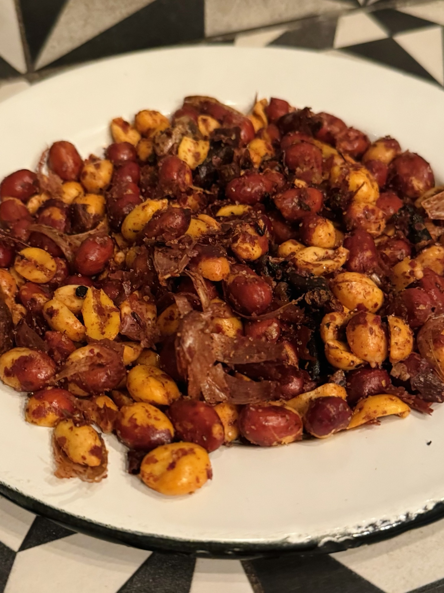 Also in the snack offering arena were some peanuts coated in chilli and garlic with grasshoppers – I’ve had grasshopper before but went in for another taste – they’re absolutely fine, quite earthy and the texture is just very dry and spiky. They’re about as substantial a snack as a piece of cucumber but with added protein though I suppose!