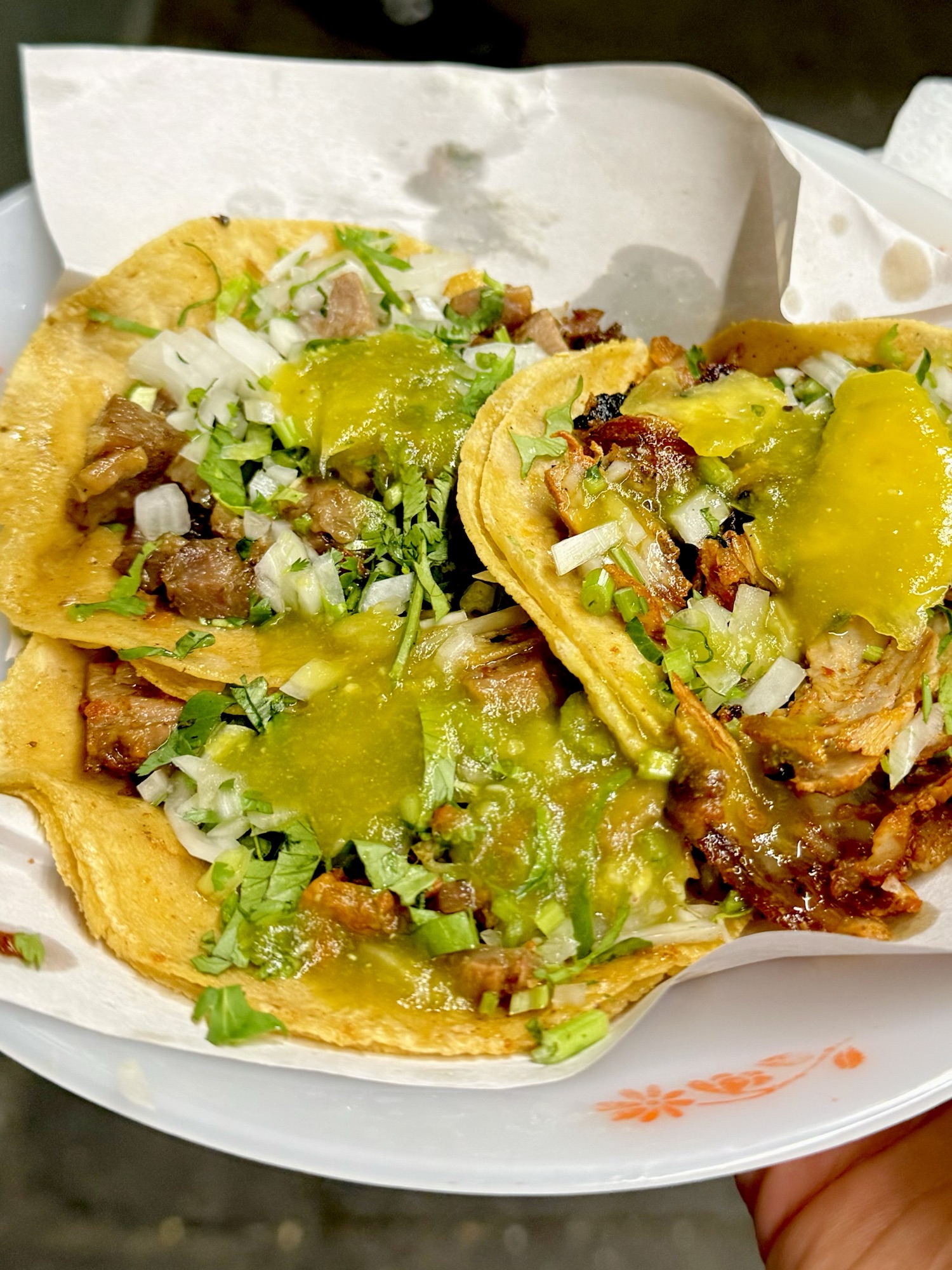 Next stop was for tacos at the busiest street stall I’ve seen since I’ve been here. People were 4 deep shouting out their orders, it was utter chaos. We’d been given the option of meat or veggie, I chose the meat (here for you Martin!) and was given a plate with a pork taco with pineapple, a beef one, and a mixed one with beef and chorizo. We could then doctor them with fresh lime juice squeezed over and salsas – painfully remembering the green salsa on the boat, I did a little taste test and this one was much better!
