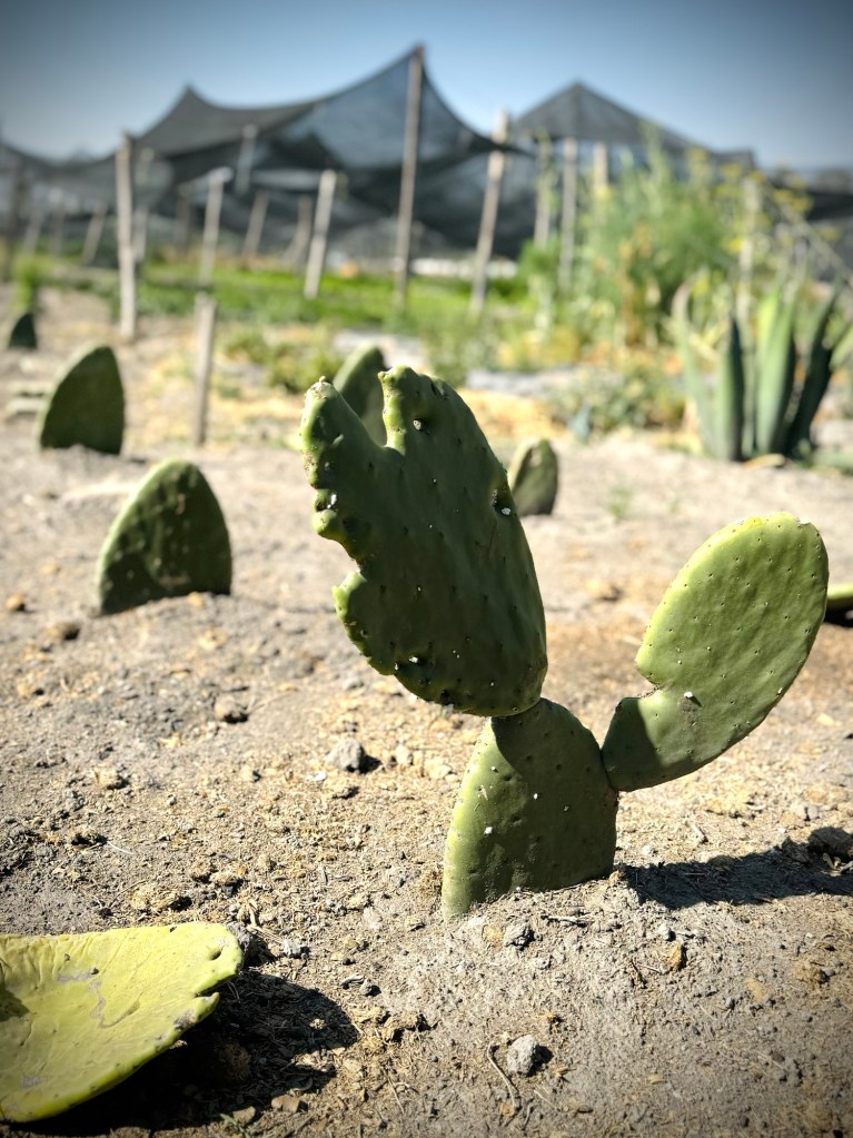 On arrival to the farm we met the lovely, smiley lady who ran it and were given a tour. It’s all organic and they grow loads of veggies that are familiar from home – enormous lettuces, corn, chard, coriander, beets, cabbage, broccoli etc (broccoli is also brócoli in Spanish – she’d be speaking in full flow rapid Spanish that I couldn’t follow at all and then suddenly ‘broccoli’ would be dropped in, sounds so funny!) but also some unusual ones that I’ve definetly never seen on a British allotment including a whole patch of cactus plants. These are mainly used in salads and are pretty good although I don’t fancy being the one that has to peel them.