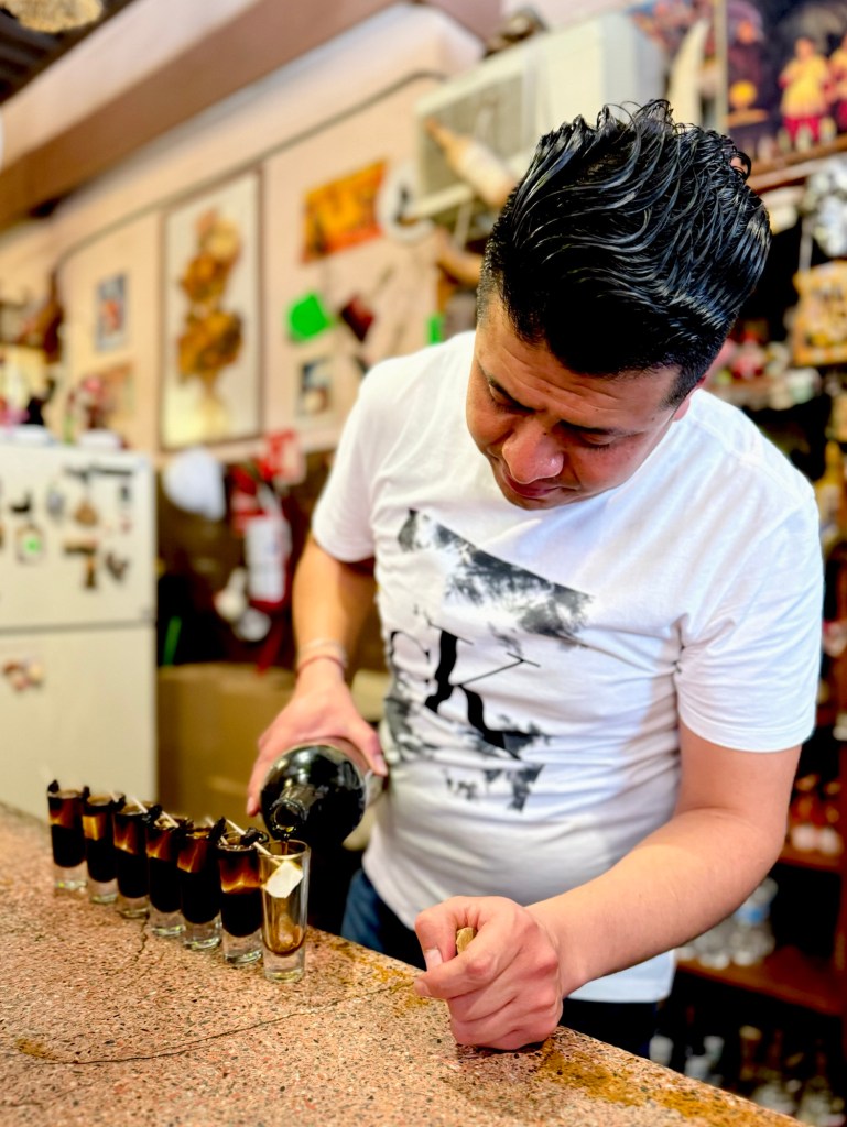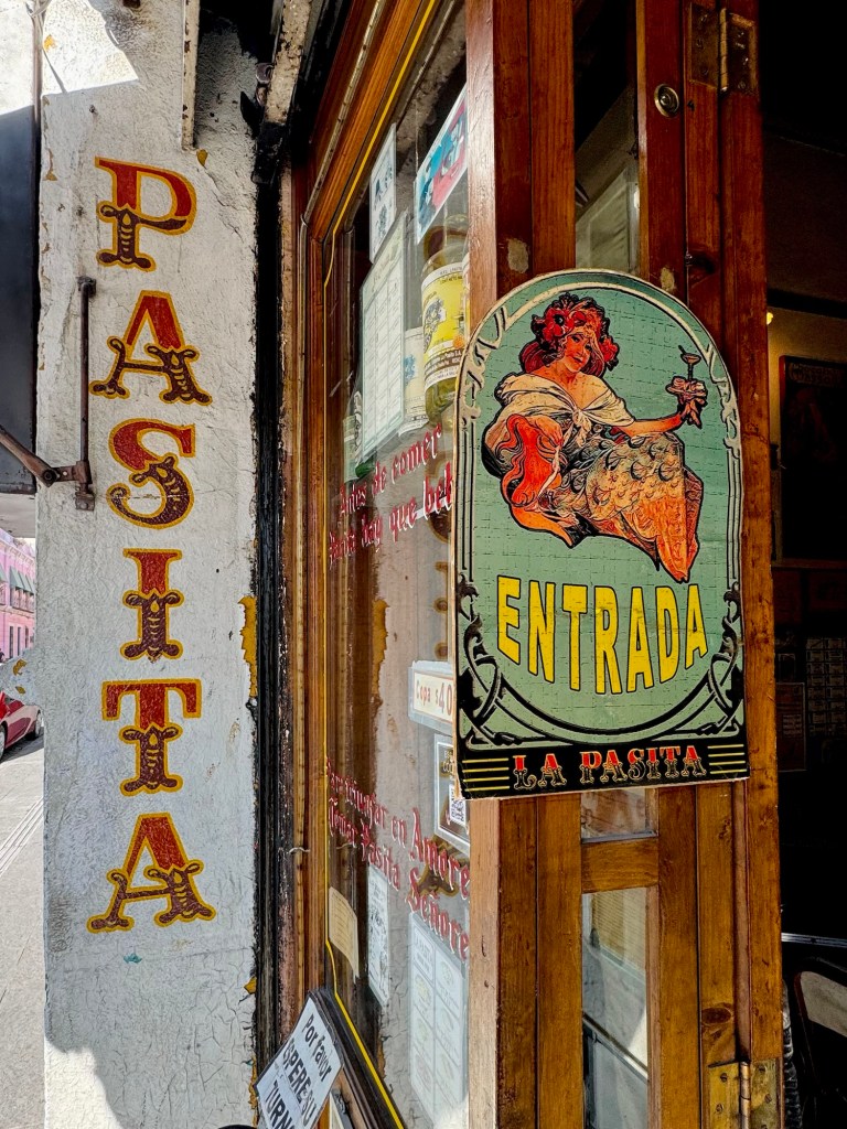 Talking of sweet, we made a stop at La Pasita, a tiny bar that makes their own liqueurs. It was such a lovely space, I feel sure it hasn’t changed much in the 100+ years it’s been there. We tried their most famous drink, a liqueur made from raisins that come with a cocktail stick of goats cheese in it! You take a bite of the cheese and then a sip of the liqueur. I have to say, it was utterly delicious, very sweet and kind of Christmas cakey and went so well with the cheese. If I drank at home and also didn’t have to drag a suitcase around half of Mexico I’d buy a bottle to bring back. They also had a dozen or so other homemade liqueurs and even an eggnog!