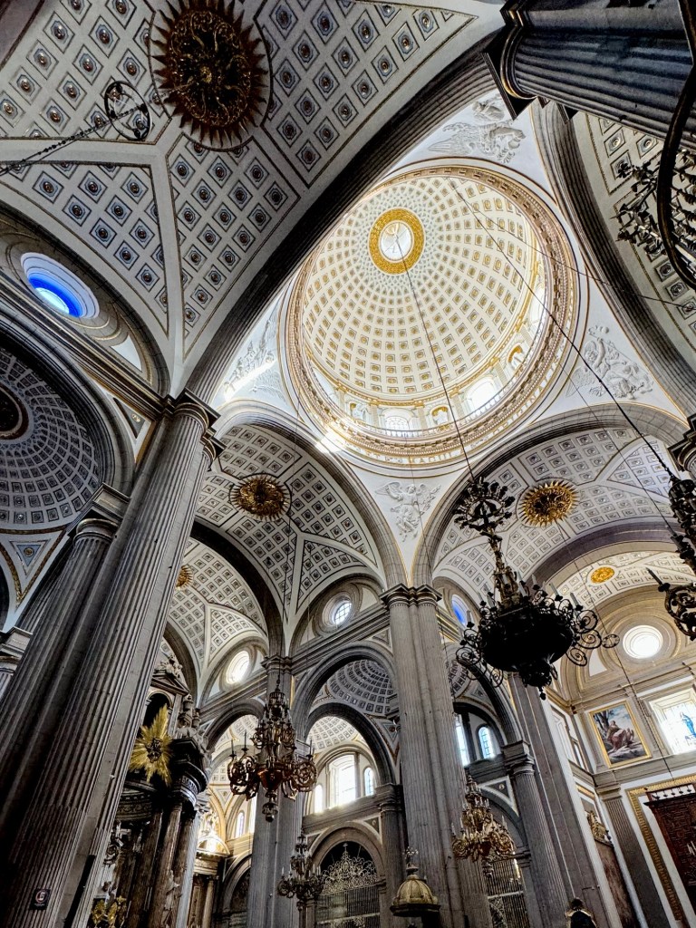 2 hours and a nap later we arrived in Puebla and went straight out on a city tour for a couple of hours. We passed dozens of candy shops which the city is very famous for, and JJ bought some of the most iconic – cookies called tortitas de Santa Clara – a wheat flour biscuit with a paste made from sugar and sunflower seeds on top. As you all know, it’s very rare I meet a biscuit I don’t like, but this was too sweet even for me and went straight into the bin!