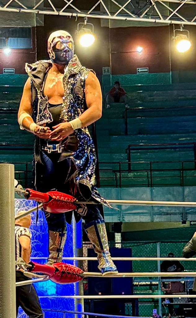 Being an aficionado on the old Lucha Libre by now, I gave a few of the others a quick lesson on how it works and the all important swear words as we pushed our way through the crush of humanity at the entrance to the stadium. The venue here is very much smaller than in Mexico City and we’d lashed out £14 each on decent tickets so were 6 rows from the front! You were close enough to see the sweat coming off the luchadors – although fortunately not close enough to feel it – note to everyone if you ever go, I wouldn’t sit in the front couple of rows…