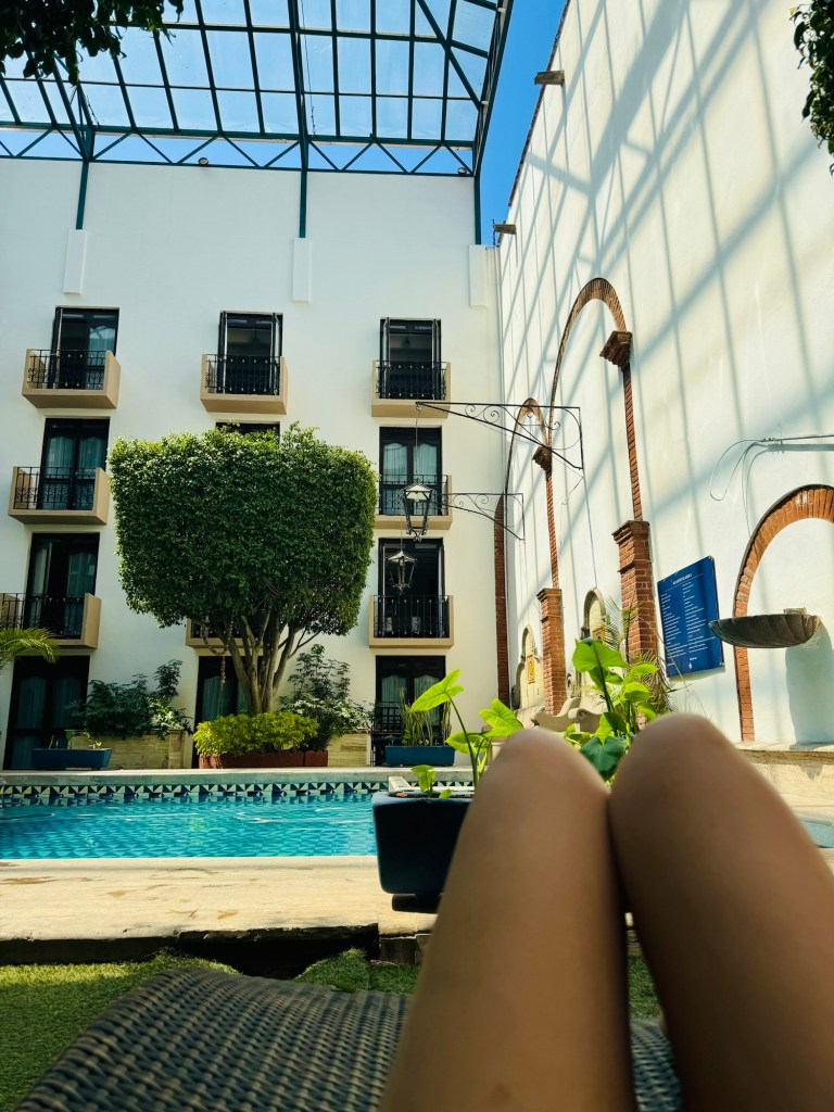 After we got back I decided to while away a few hours by the pool, so laid on a very wonky sun lounger in the shade and caught up on diaries and photo sorting. No preschoolers today, just some acoustic versions of famous songs pop playing, it was all terribly peaceful and civilised. Also – are you even on holiday if you don’t post a hot dogs legs photo…?