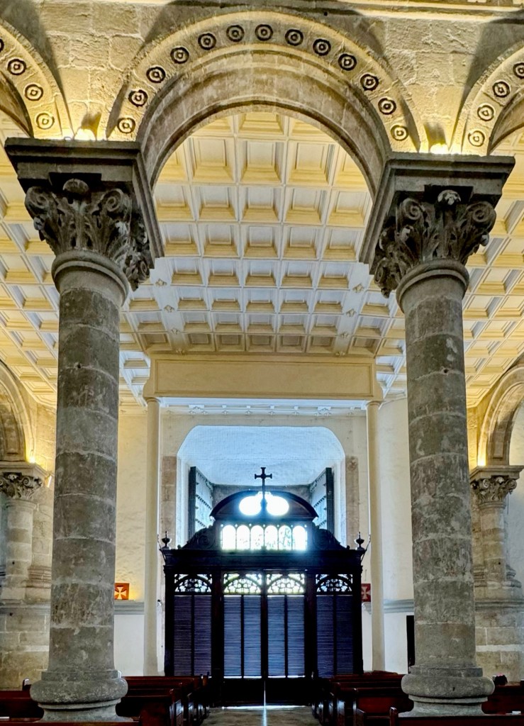 The centre piece of the altar was the largest crucifix I’d even seen – and I don’t wish to be sacrilegious, but is it just me that can see the bat signal above the doorway below? Some kind of secret divine/crime fighting collaboration that we’re not aware of? That’s what the next superhero movie should be about, even I’d watch that!